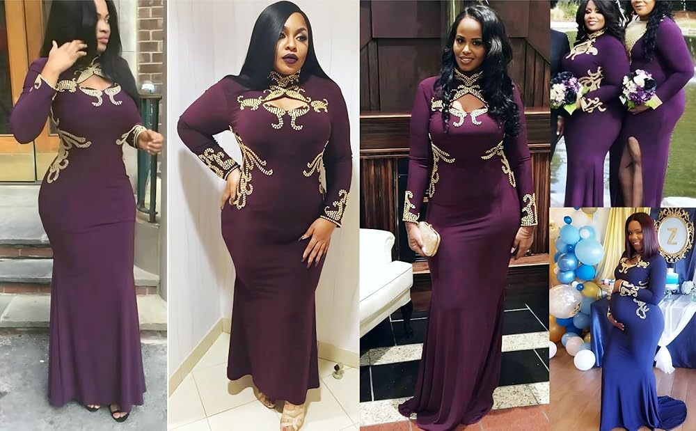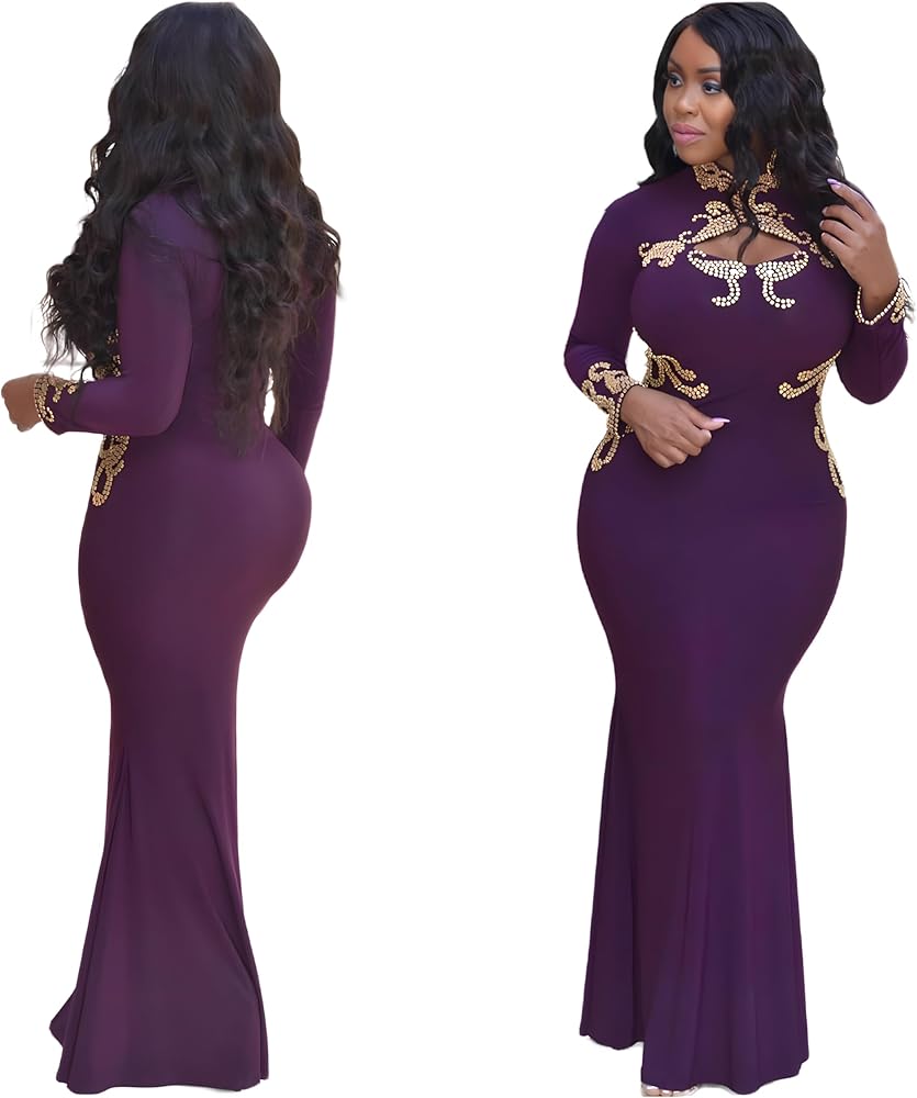 Features: This art deco (1920) elegant dress adorned with meticulously sewn beads on neck line and wrist. Form-fitting bodycon for a flattering silhouette. A timeless, figure-hugging purple wedding guest dress.