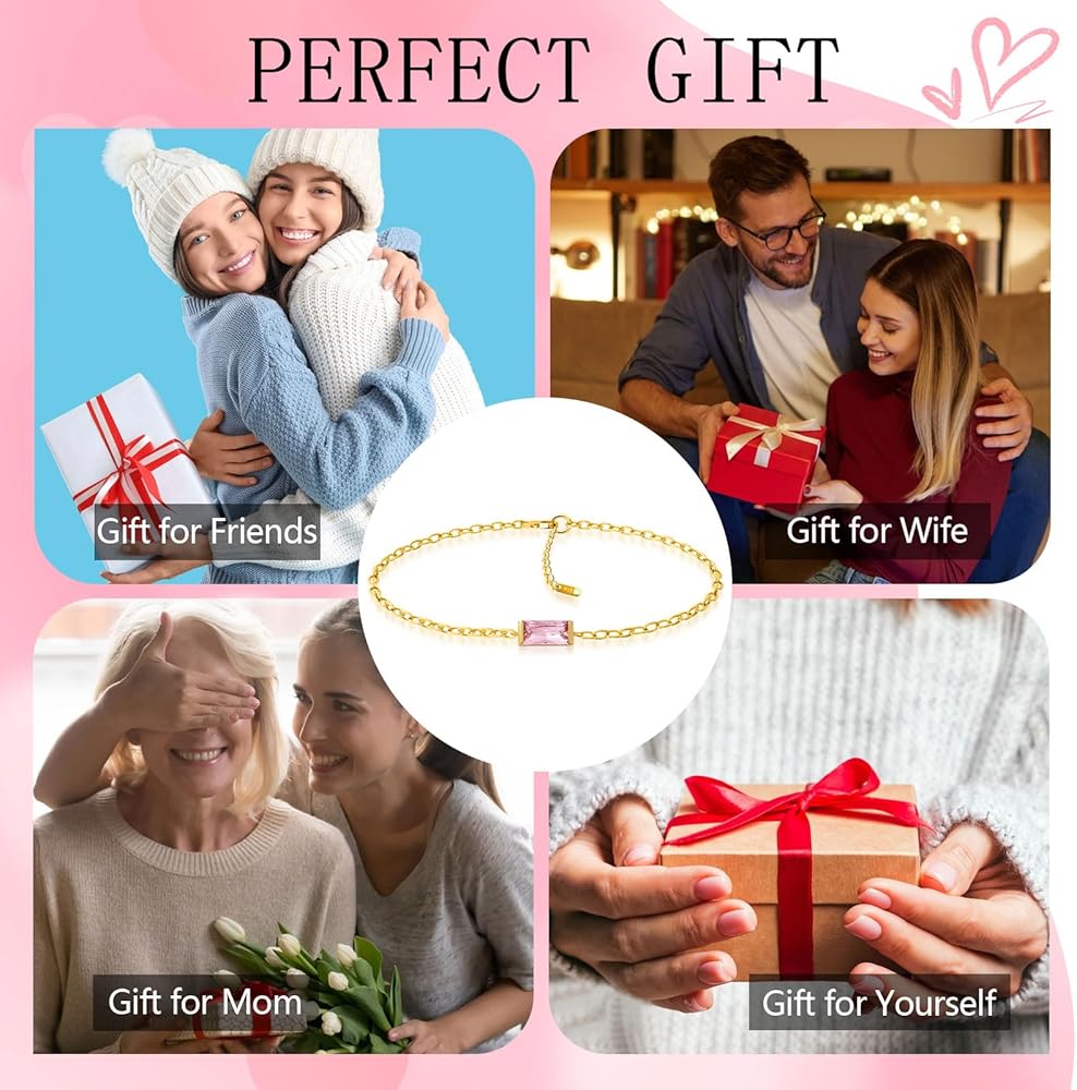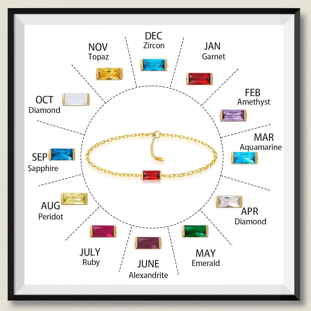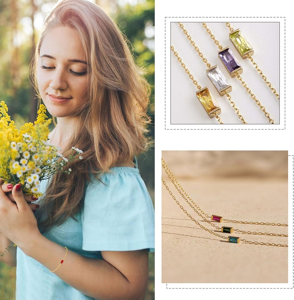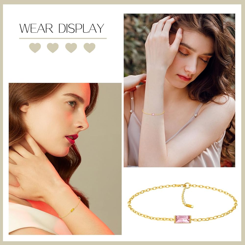 【Material & Size】 The birthstone bracelets are made of 18k gold plated ensures a long-lasting shine, Hypoallergenic, tarnish resistant, can be worn every day. Length of the gold birthstone bracelet is 6.3"+1.2."(16cm+3cm) extender, adjustable for your need, can fit most woman and teen wirst.