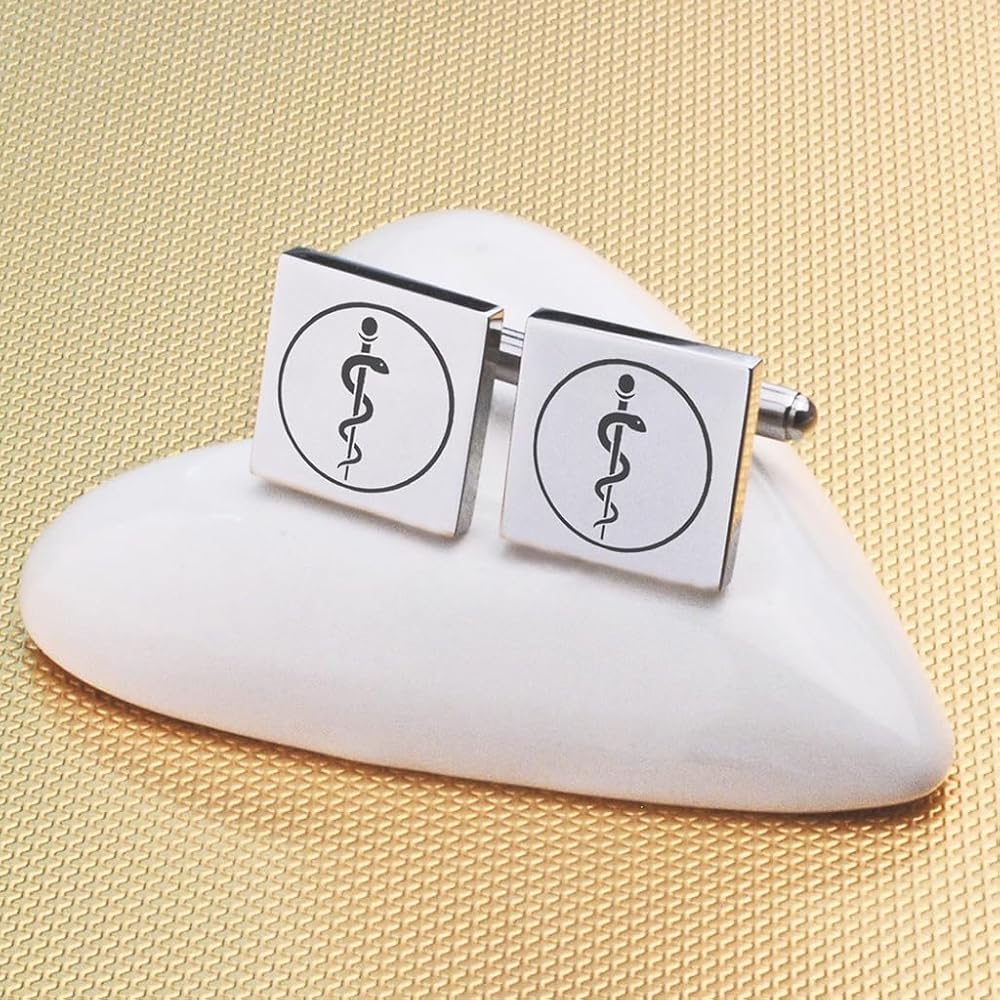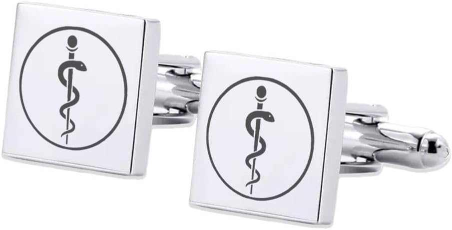Our Rod of Asclepius cufflinks make a memorable gift for the medical school graduate or any medical professional. The cufflinks are engraved with the well-known medical symbol that represents the Greek god of healing and medicine. With a timeless and elegant design, he will appreciate the classic and stylish look, and enjoy these cufflinks for years to come. Available in stainless steel and yellow gold plated steel. A thoughtful gift for the graduate, or anyone in the practice of medicine.
