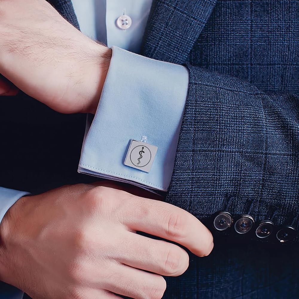 Each pair of cufflinks is engraved with the Rod of Asclepius