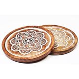 Wooden Set of 2 Mandala Design Trivet for Hot Dishes Plates & Pots Holder Hot Pad for Kitchen & Dining Table Décor Cookware Heat Resistant Rustic Decorative Carvings 8 Inches (Design1)