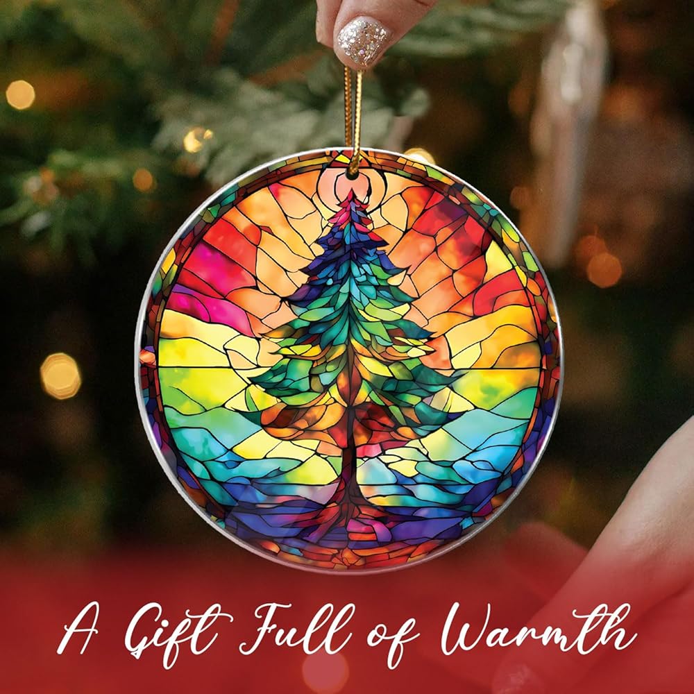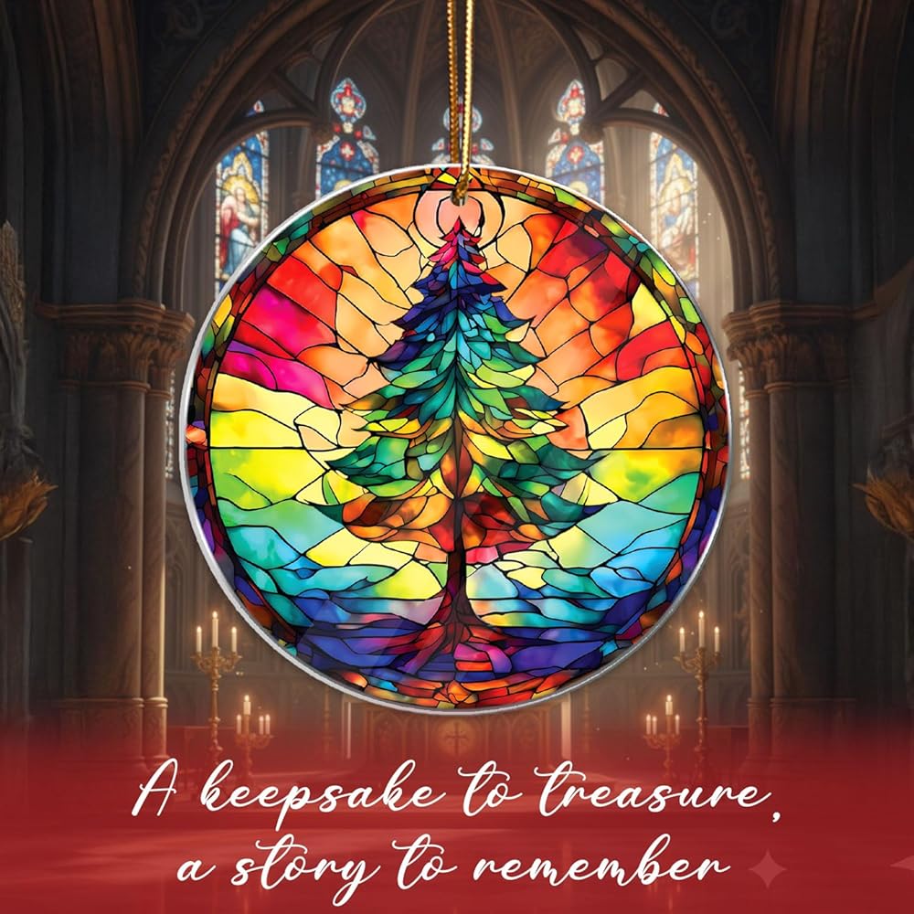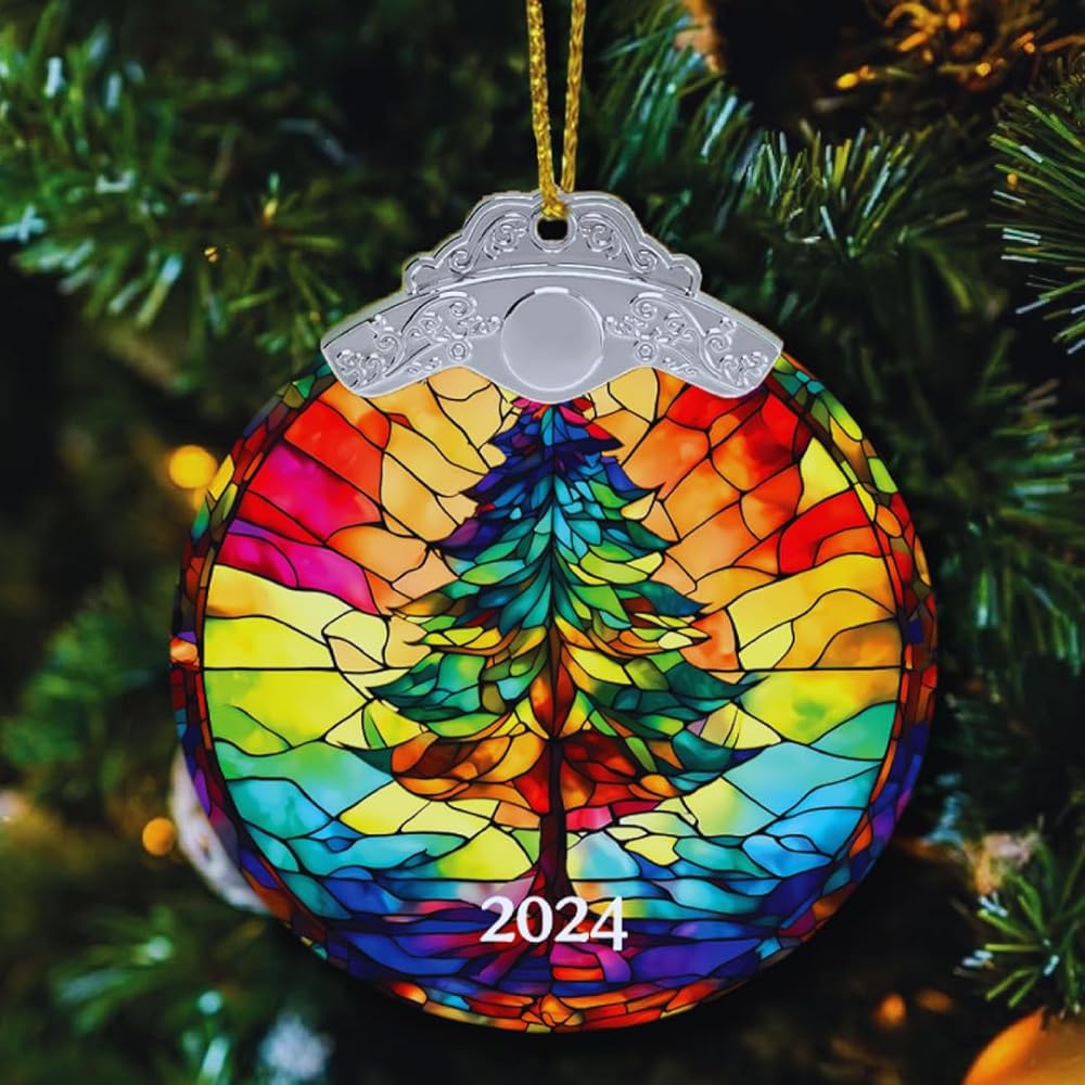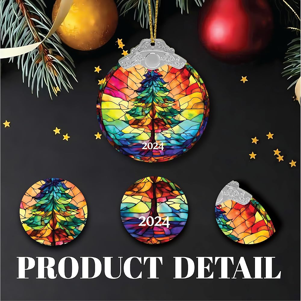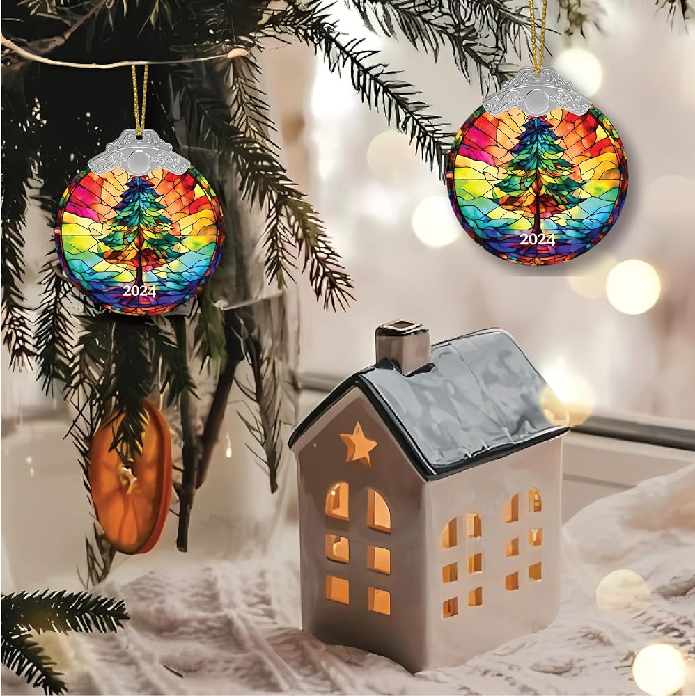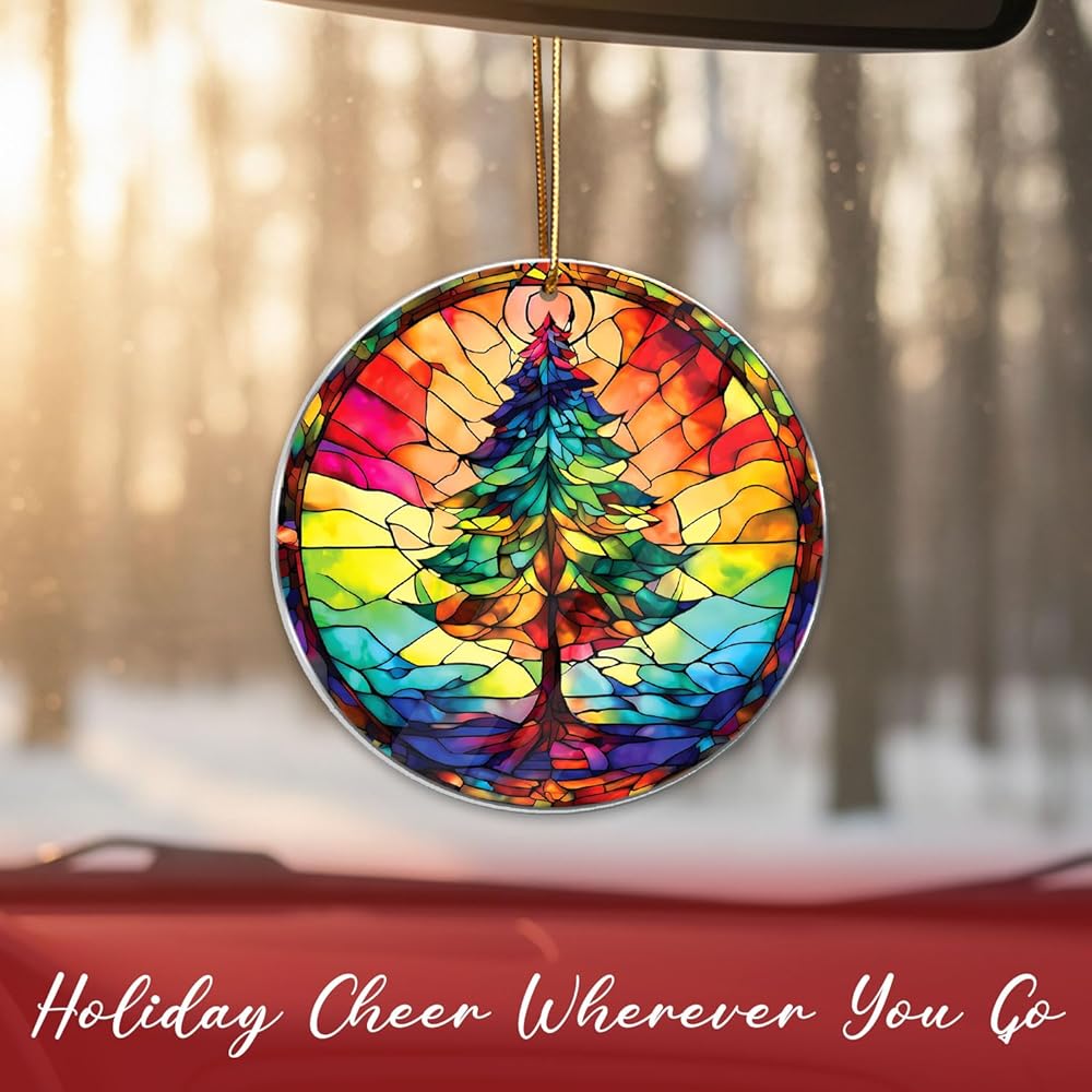Christmas Ornaments 2025, White Elephant Gifts Car Interiors Decors, Acrylic Christmas Tree Suncatcher Effect, Stained Glass Style Hanging Ornaments, Acrylic Christmas Ornaments for Tree Hanging