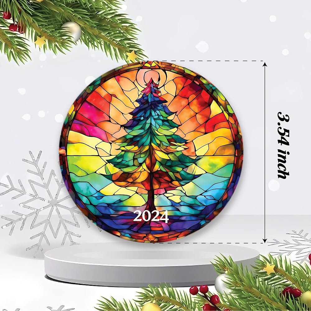 2024 Christmas Tree Forest Ornaments Round Ceramic Ornament Christmas Keepsake Decor for Christmas .Includes:1x Christmas acrylic pendant ; Material: acrylic ; Size: 3.5*3.5 inch.