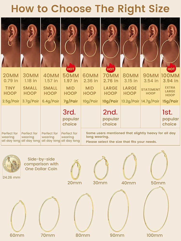 Lightweight Hoop Earrings for Women: Effortless elegance meets all-day comfort in our sleek 2MM ear hoops. Weighing a mere 10g, these 70MM diameter stunners are designed for a lightweight, head-turning statement
