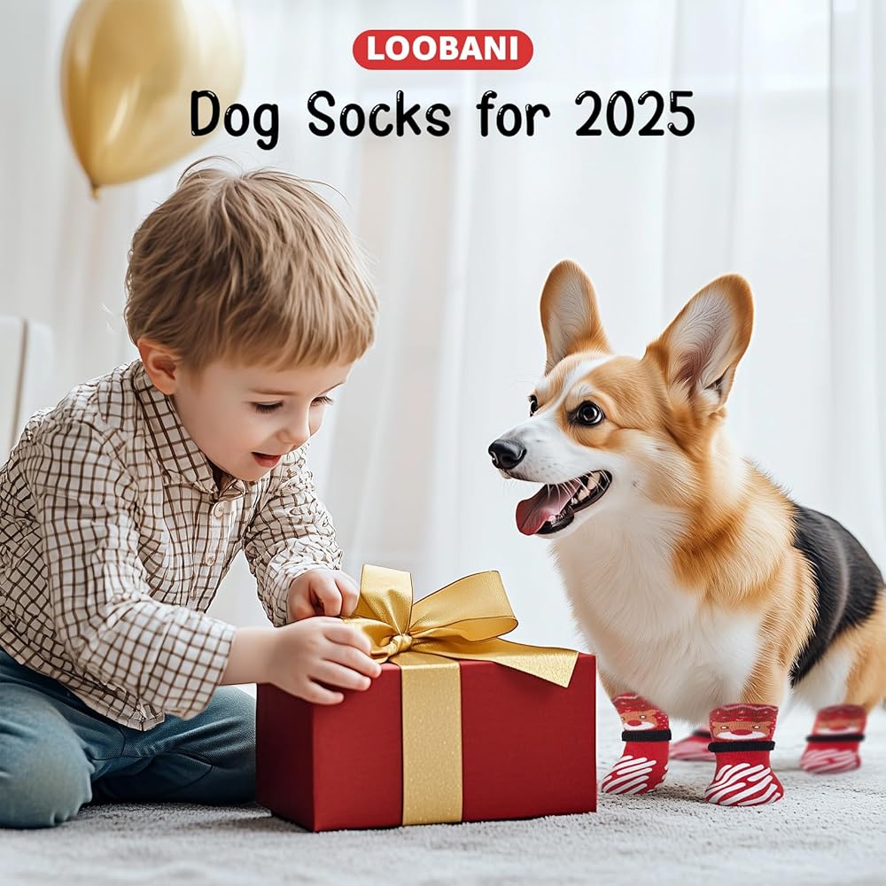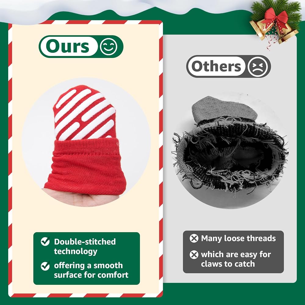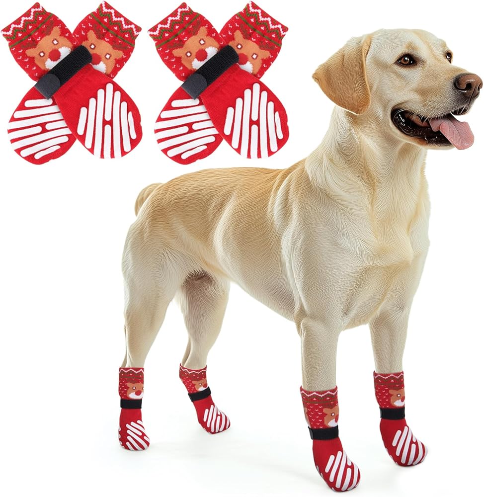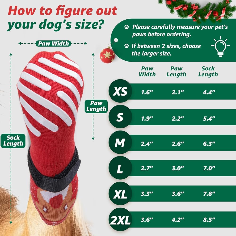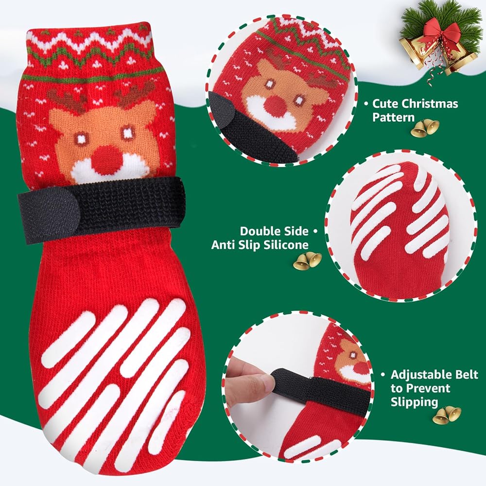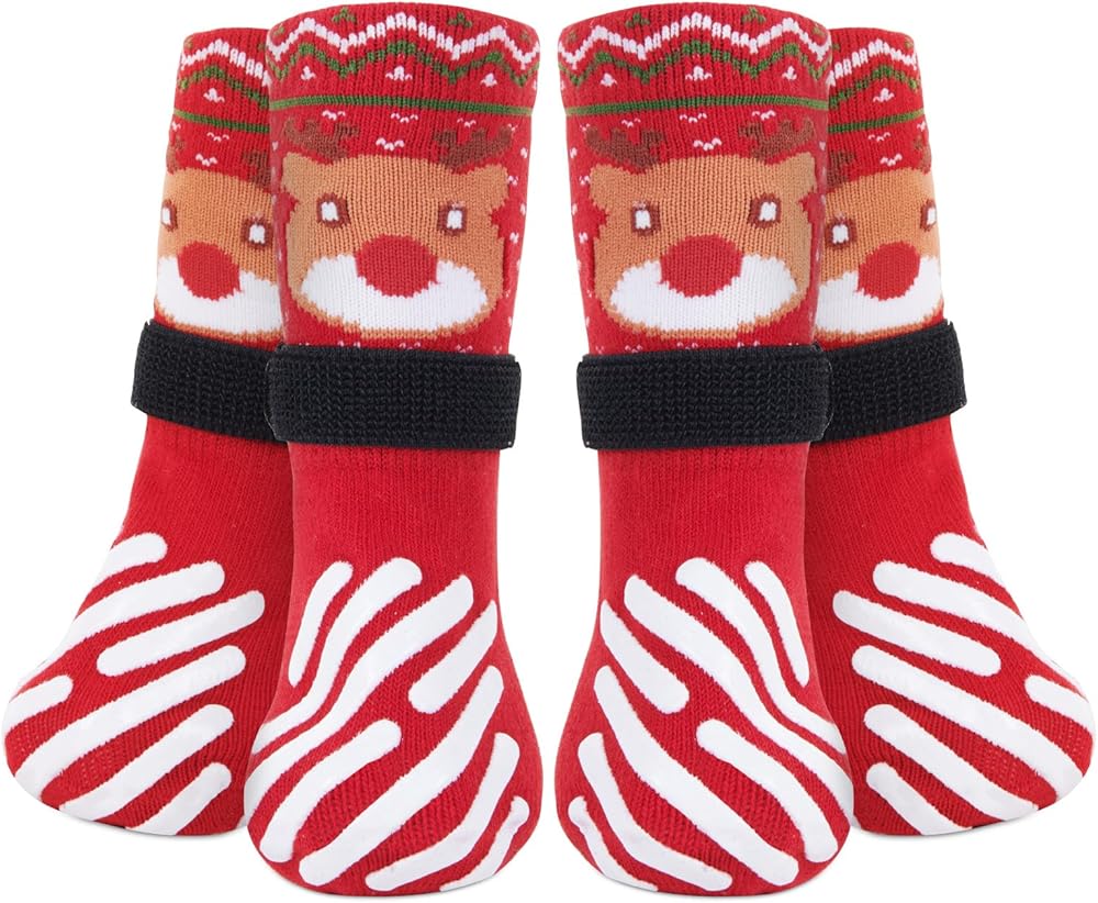 Christmas Dog Socks: Keep your furry friend safe this holiday season with our festive, dog socks! Designed with non slip design, these cozy socks ensure stable steps on any surface, while adding a cheerful, holiday vibe