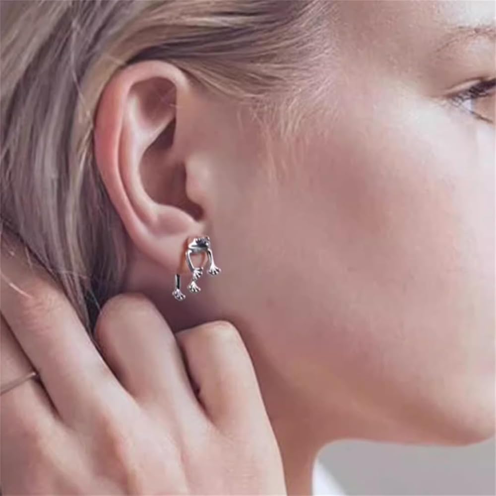 🐸 Frog Earrings: This frog earring consists of two parts and can be facing or opposite to the person in front of it. It gives the illusion of a frog passing through the earlobe. It's cool. Frog earmuffs are very suitable for frog enthusiasts and can be easily worn on their ears.