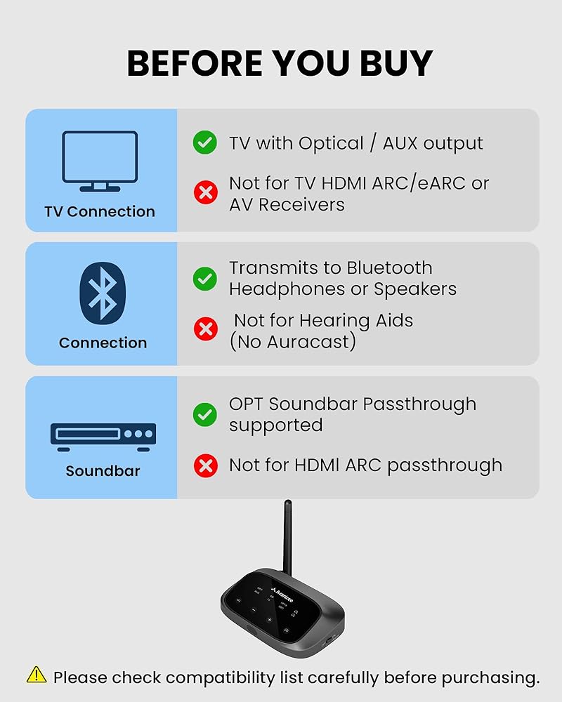 [NO LIP-SYNC DELAYS] The Oasis Plus 2's aptX-Adaptive & aptX-Low Latency support enables high-quality audio at a low latency when used with headphones that also support one or both codecs, ensuring a perfectly synced audio & visual experience at a range of up to 164ft / 50m.