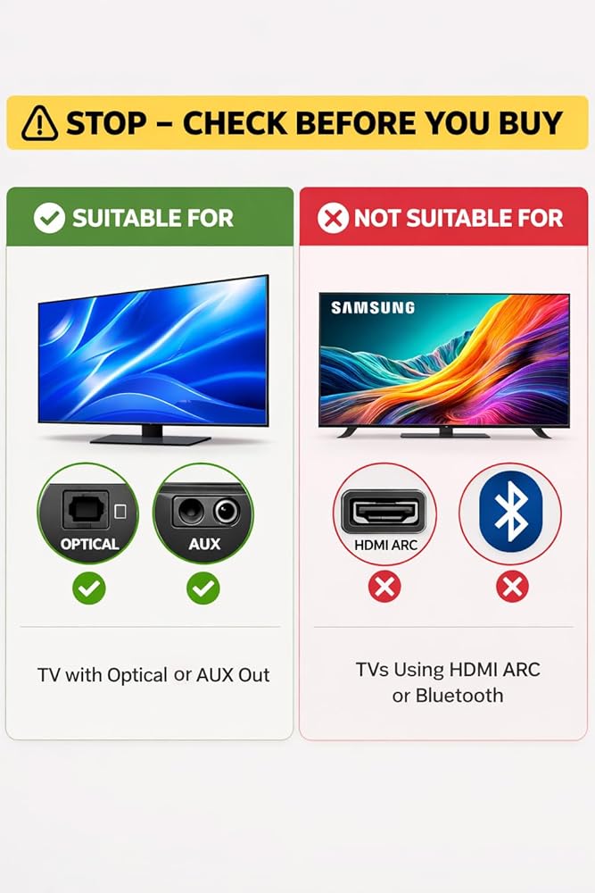 [UNIVERSAL COMPATIBILITY] With optical & AUX input options, the Oasis Plus 2 allows you to stream wireless audio from the majority of TVs on the market.