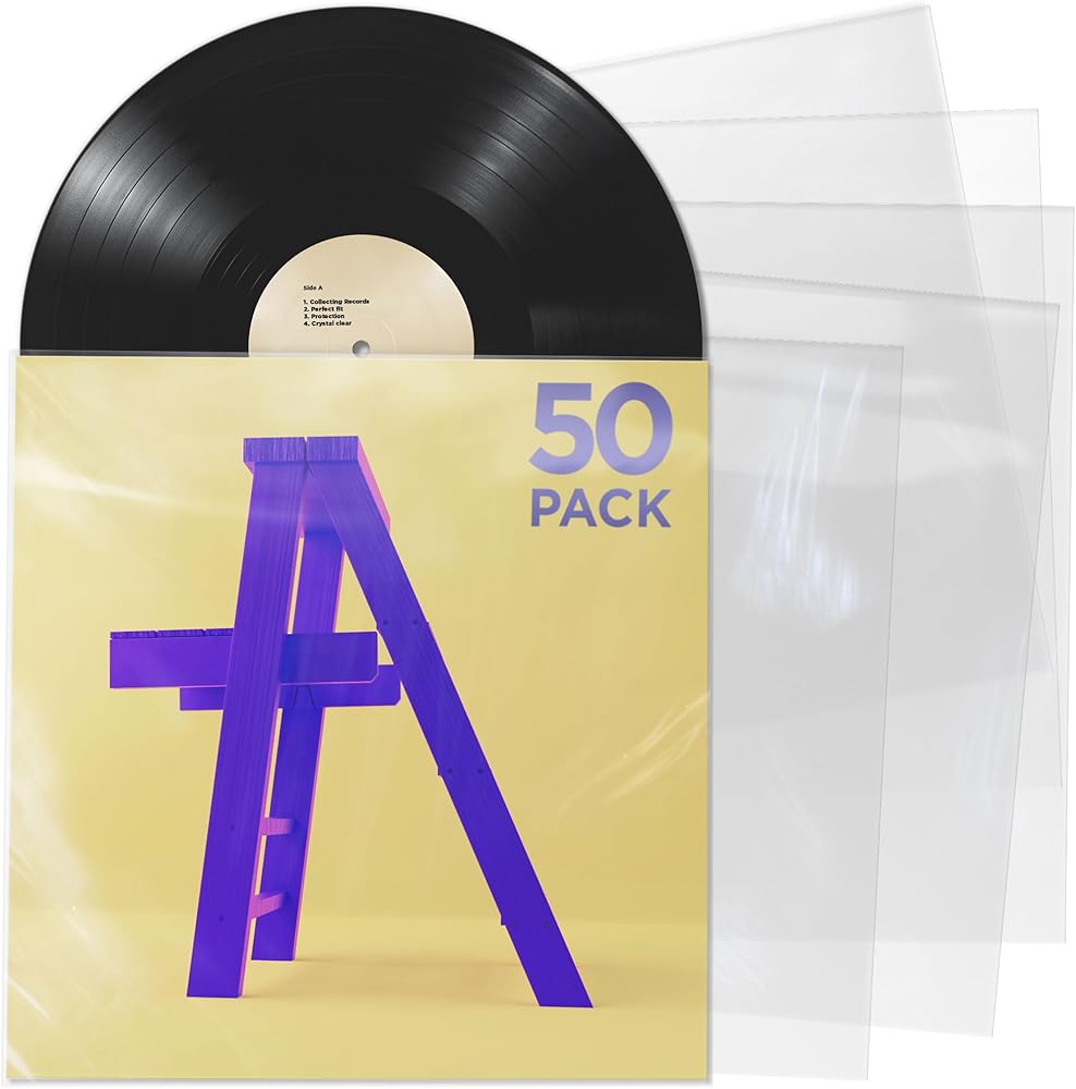 Claev Outer Record Sleeves for Album Covers - 50 Clear Plastic Outer Sleeves to Protect 12" LP Vinyl Record Albums - 12.75 x 12.75 inch & 3 mil Thick - Archival Quality for Collection Protection