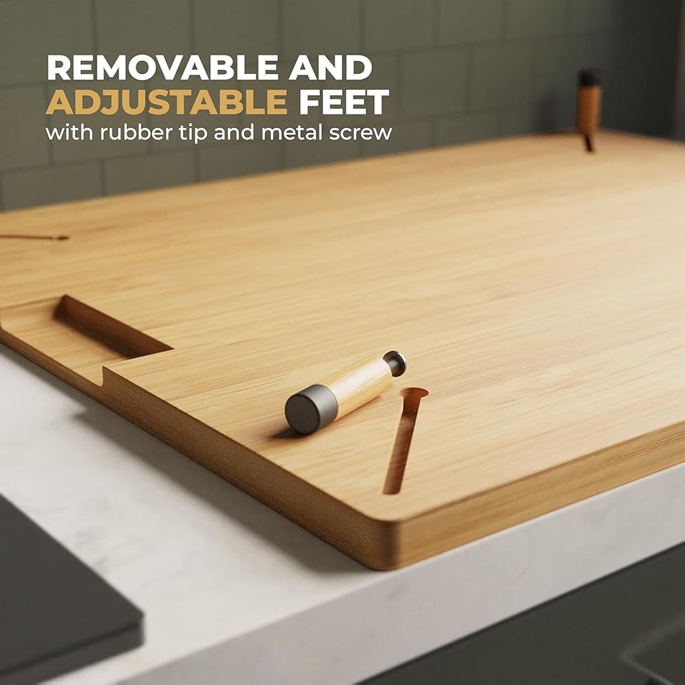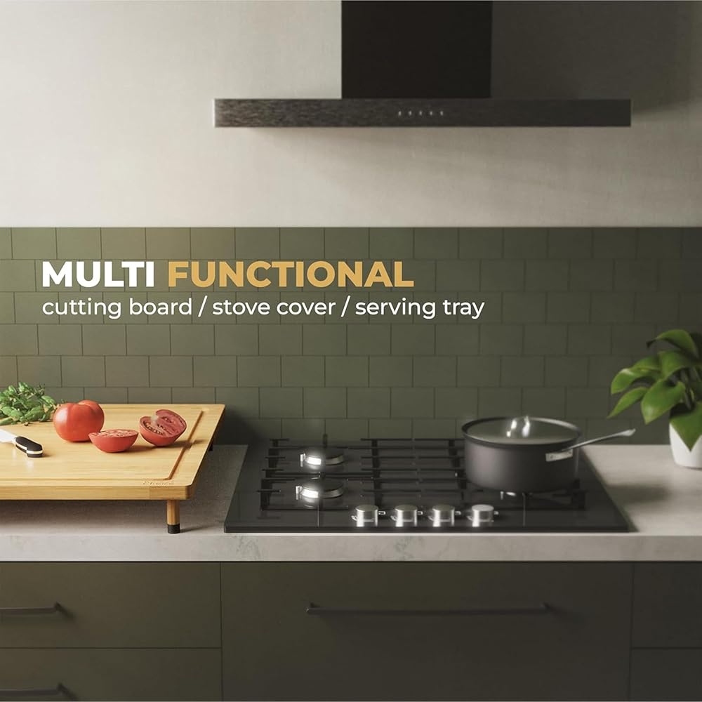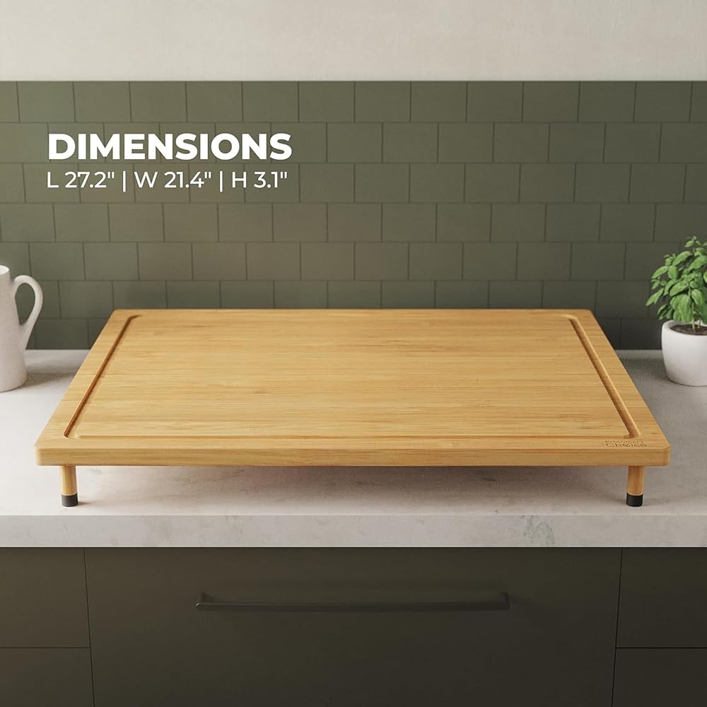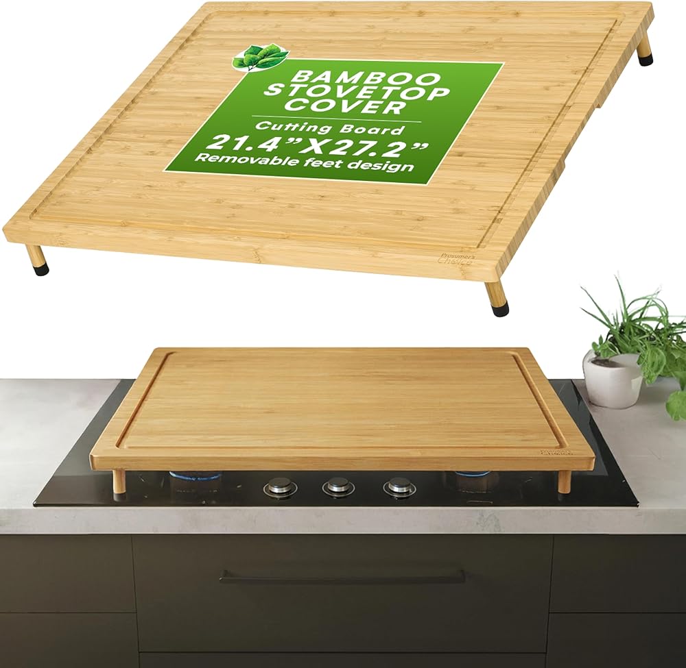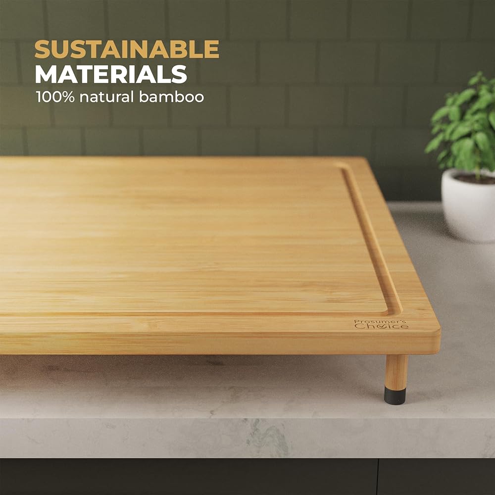 Prosumer's Choice Bamboo Stove Top Cover Board - Versatile Wooden Cutting Board for Kitchen with Adjustable Legs and Juice Grooves- Large Surface and Durable for Stoves, 27.2 x 21.4 x 3.1 Inches