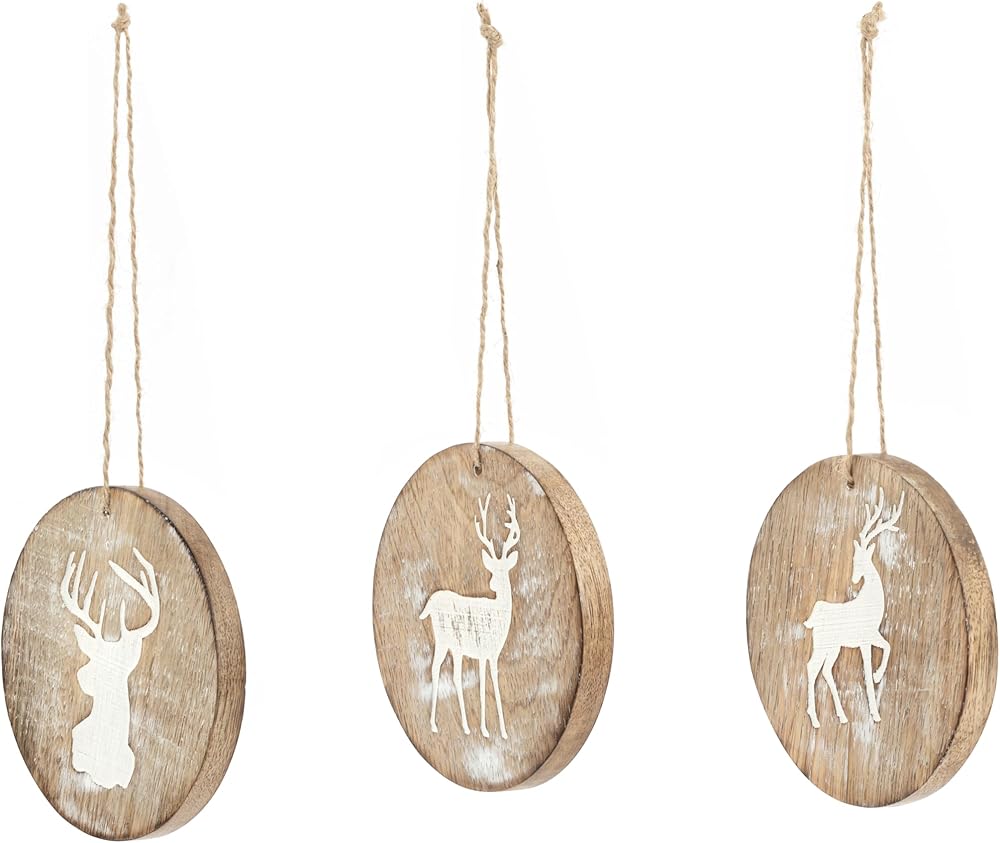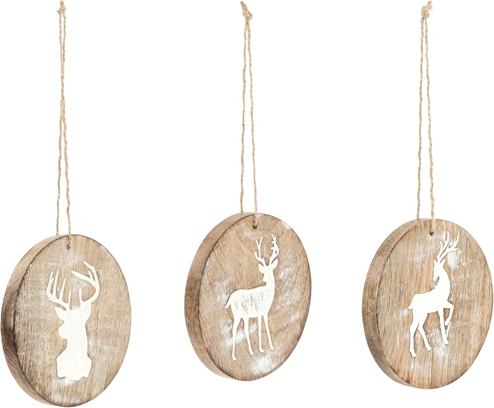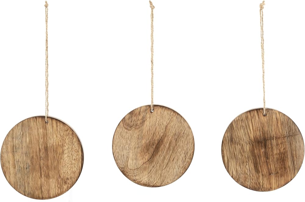 Measures approximately 4.5 x 4 inches; Hangs from a string rope loop; Boasts a timeless rustic-inspired aesthetic