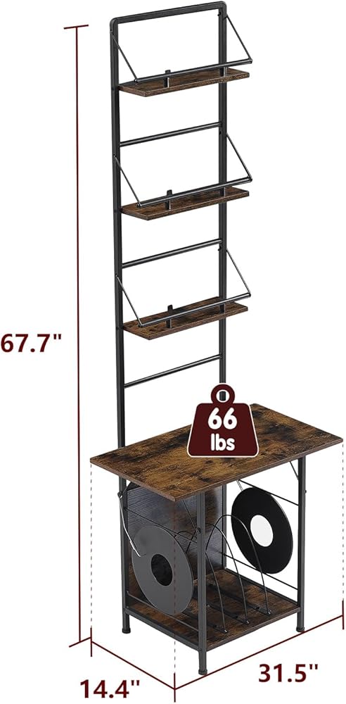 Fits All Turntable Sizes: Our enlarged 31.5“ countertop of the vinyl record storage shelf accommodates turntables of all sizes and smaller record collections, allowing you to enjoy your music without worrying about your turntable slipping