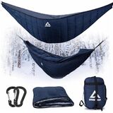 [Spacious Quilt] Spacious size to hold most of standard hammocks. Hammock under quilt size is 95in x 55in (LxW). Split design on both ends make it easier to keep the under blanket in the correct position. The hammock underquilt could keep your comfortable sleeping positions in the cold night, and underquilt wonnot slide or lean in using
