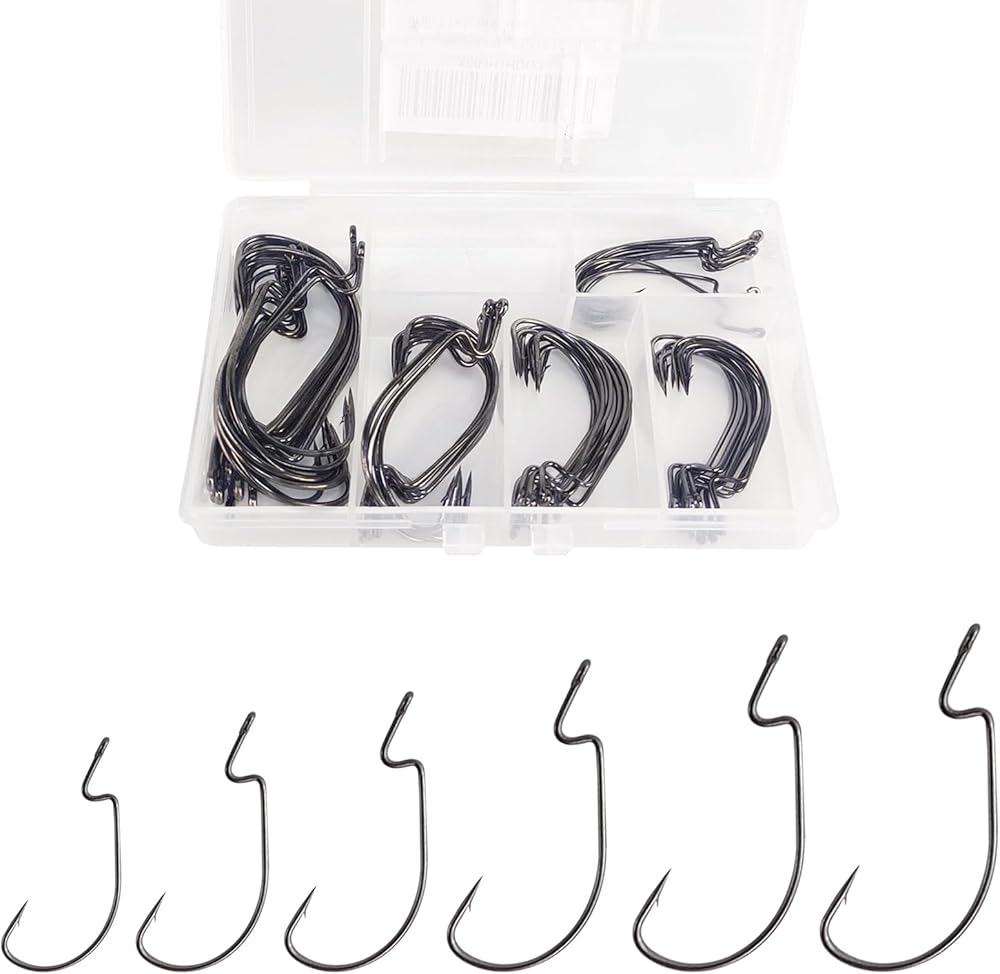 Eupheng EWG Hooks feature a sharp, offset shank and closed eye design that is ideal for Texas rigging, Carolina rigging, and pairing with rubber worms, plastics baits, Senkos, Wacky Worm, jigs and rigs.