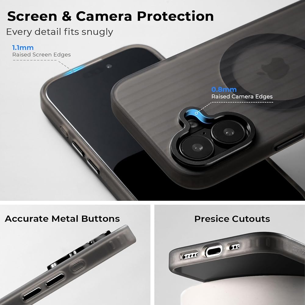 Drop Protection & Raised Edges: The durable 16 pro phone cover is crafted from soft flexible TPU material, offers shock absorption to protect against impacts. The raised edges around the camera(0.8mm) and screen(1.1mm) provide extra depth of protection, guarding against screen damage from accidental drops.