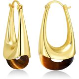 Long Oval Chunky Dangle Gold Hoops with Colored Resin Gemstone Statement Earrings for Women by SNGIA, (Green, Brown, Light blue, Dark Blue), Bold Drop Handmade Exaggerated Irregular Trendy Bohemian Jewelry Gifts, Unique Dangling Teardrop Baroque Stone Sum