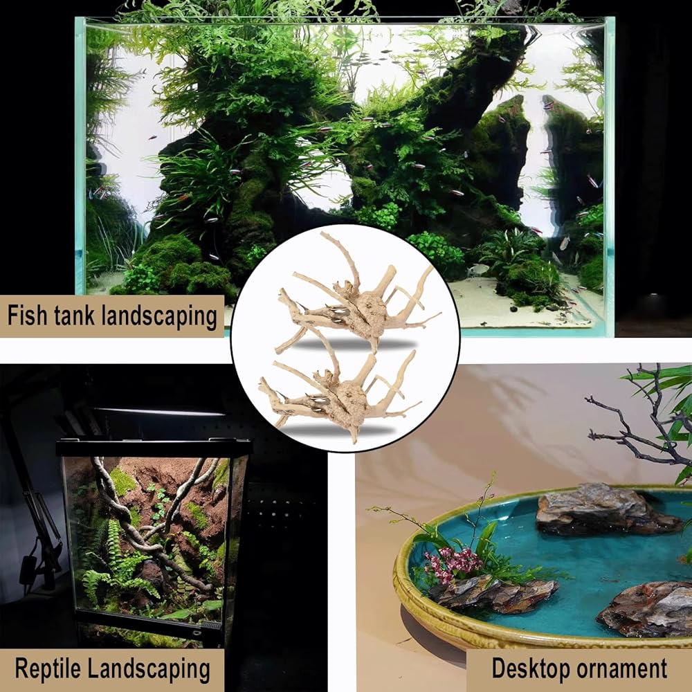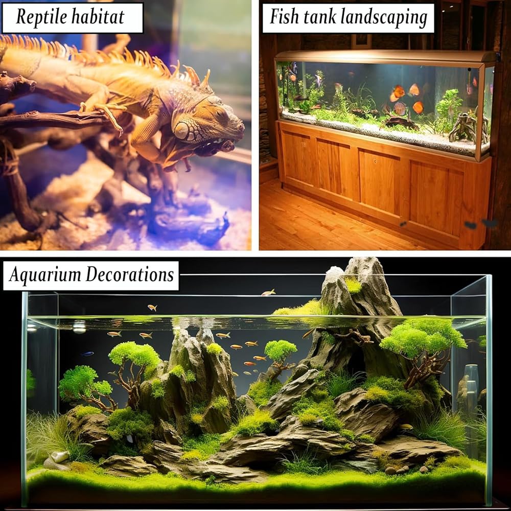 【Versatile for Multiple Aquarium Styles】Unleash your creativity with our driftwood, which complements both minimalist and elaborate aquarium designs. Perfect for crafting mesmerizing moss trees or simply adding a touch of nature to your fish tank, it also doubles as an alluring reptile climbing habitat, enhancing the natural beauty of aquariums and terrariums alike.