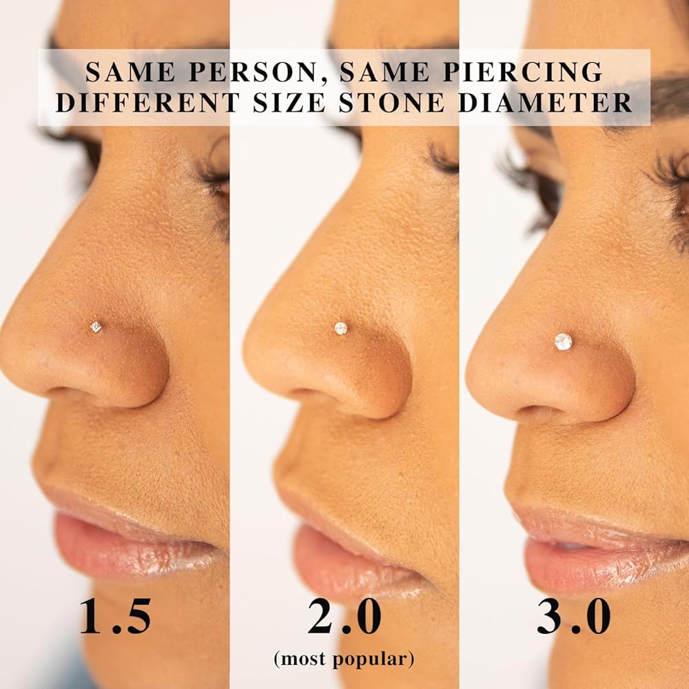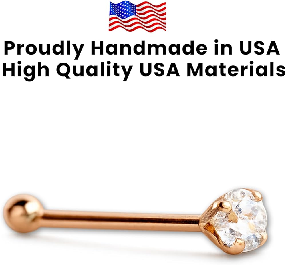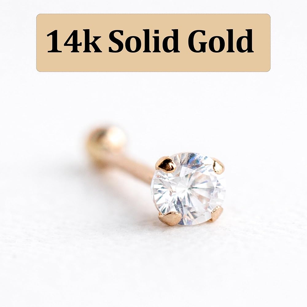 Ellie J Maui 14k Solid Gold 2.0mm CZ Nose Stud – Tiny Faux Diamond Nose Bone Piercing Jewelry for Women – Micro Nostril & Cartilage Stud, 22 Gauge, Handmade in USA