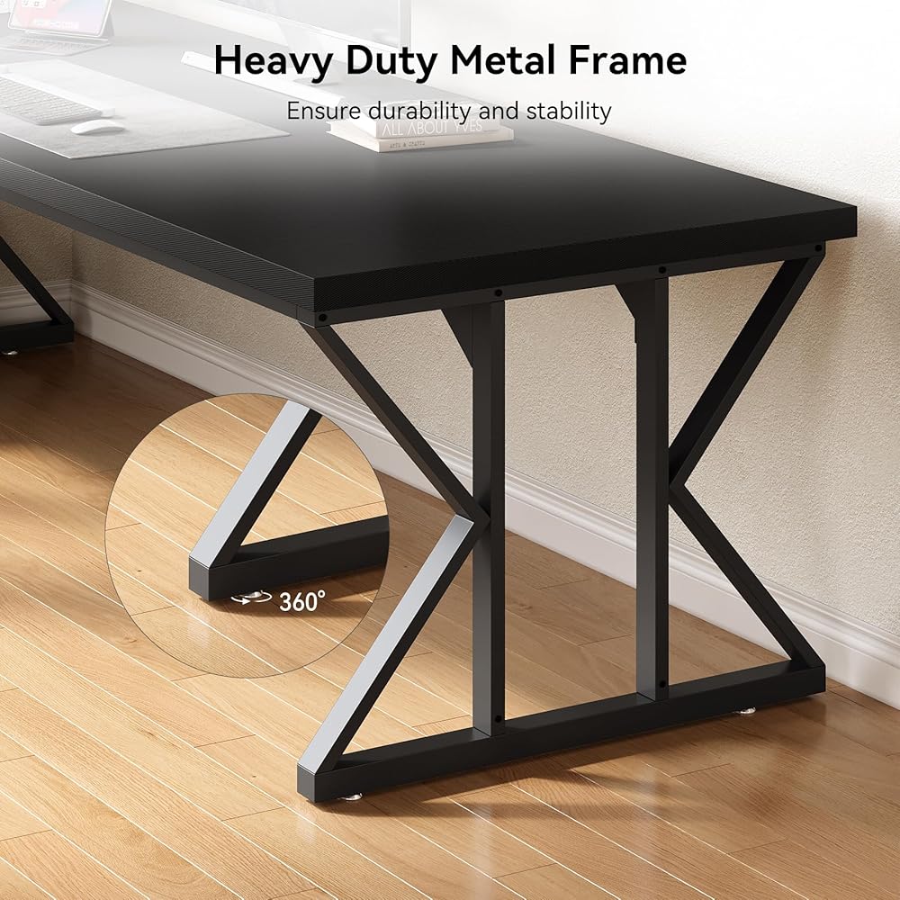 Sturdy Construction: This executive desk is made of a 1.57-inch thickened tabletop and sturdy metal legs that are waterproof, corrosion-resistant, and long-lasting. In addition, the adjustable legs keep it stable on uneven floors.