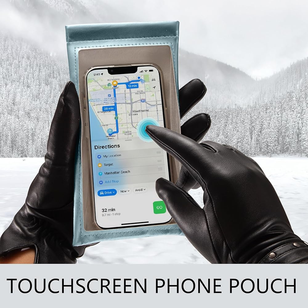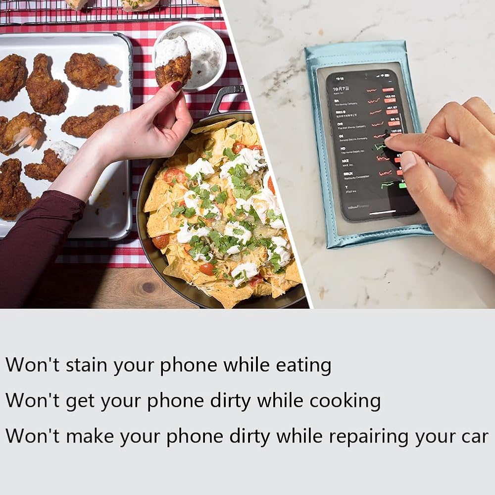 Touchscreen - Designed with a clear window, which enable you to watch and control cell phone easliy, you do not need to take out cell phone from pouch, so the pouch insulates the cell phone from the outside cold air, it keeps phone warm when using it. It will help to keep your phone clean when eating, cooking, etc.