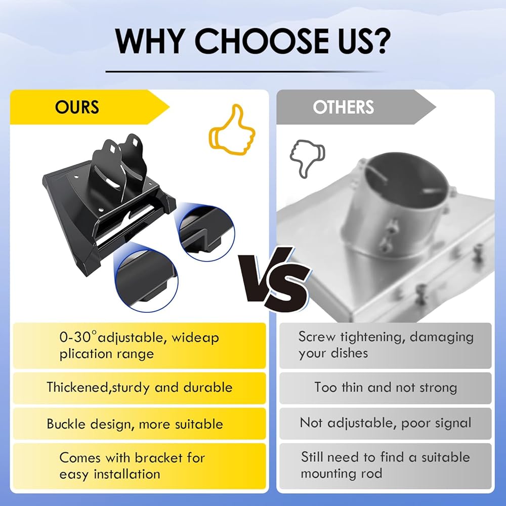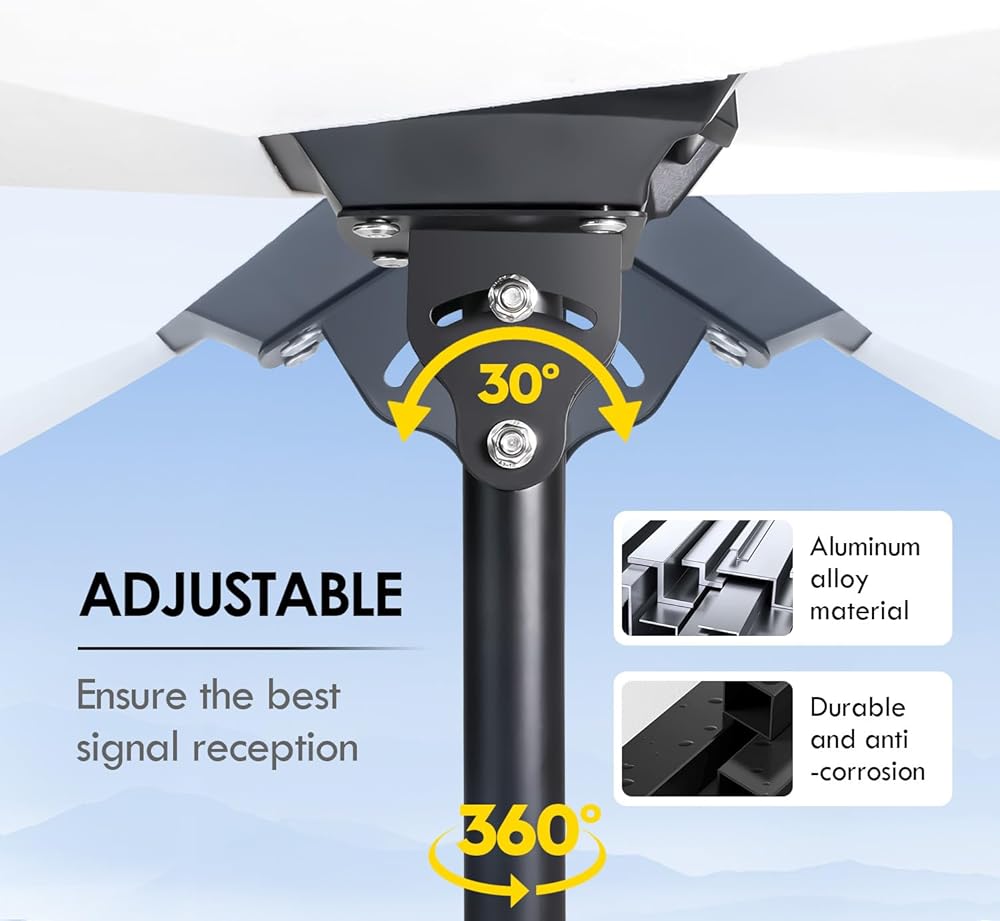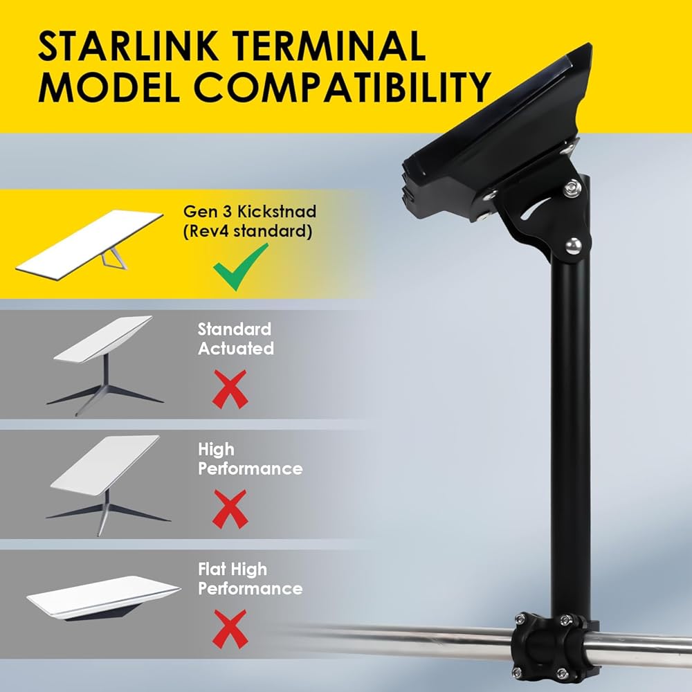 Versatile Mounting: The Starlink Gen 3 mount provides a portable and versatile mounting option for your Starlink dish. With a Starlink pipe adapter, It can be securely mounted to any ladder or pole From 0.8-1.1”, making it the perfect solution for mounting on poles, roofs, RVs, SUVs, or any outdoor surface