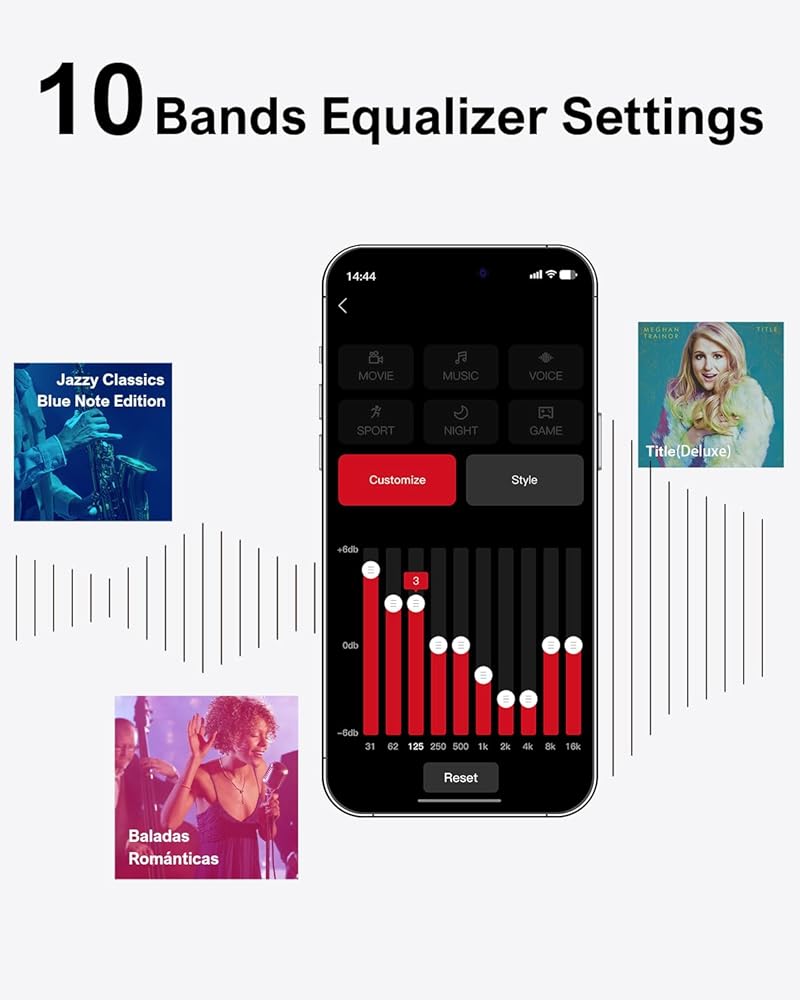 10-Band Equalizer Settings: Elevate your audio experience with 6 tailored EQ modes: Movie, Music, Voice, Sport, Game, and Night, each finely tuned for optimal performance. Plus, use the ULTIMEA App's "Customize" feature to fine-tune your sound for a perfect, personalized experience.