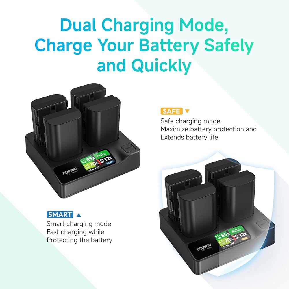 Accsoon Toprig Battery Charger 4-Channel PD60W Fast Charging with LCD Display, Compatible with Canon EOS EOS R5, R6 Mark II, 5D 6D 7D Mark II III IV, 60D 70D 80D DSLR Camcorder (LP-E6 Battery Charger)
