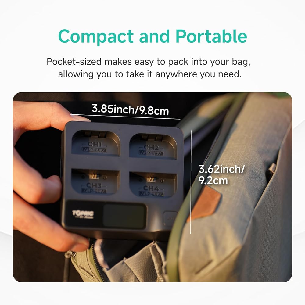 Portable 4-channel charger: BC-01 is equipped with 4 charging channels, which can charge 4 NP-F batteries at the same time, greatly improving the charging efficiency. The portable design makes it easier to carry, and it weighs only 189G.