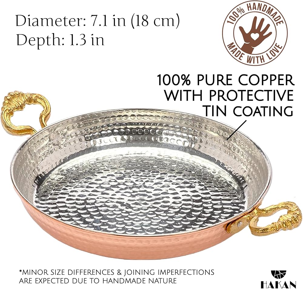 PERFECT SIZE – The copper pan varies in size with 5,5”, 6,3”, 7”, 7,8”, 8,6”, 9,4” and 10,6” allowing you to have your food in whatever quantity.