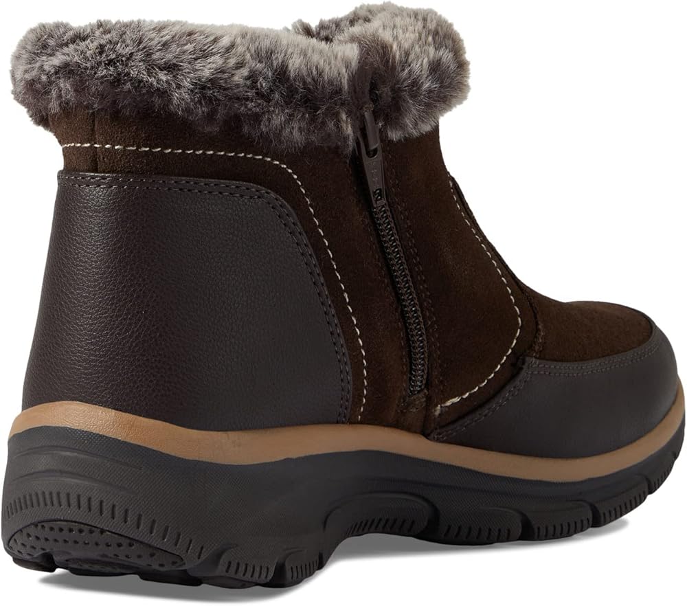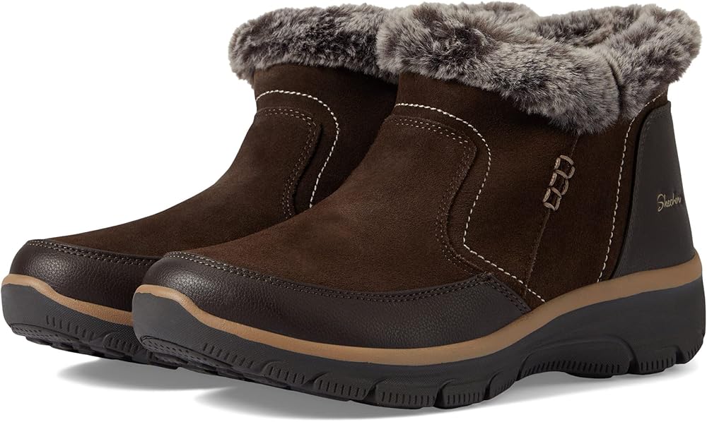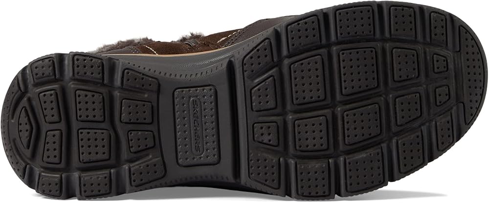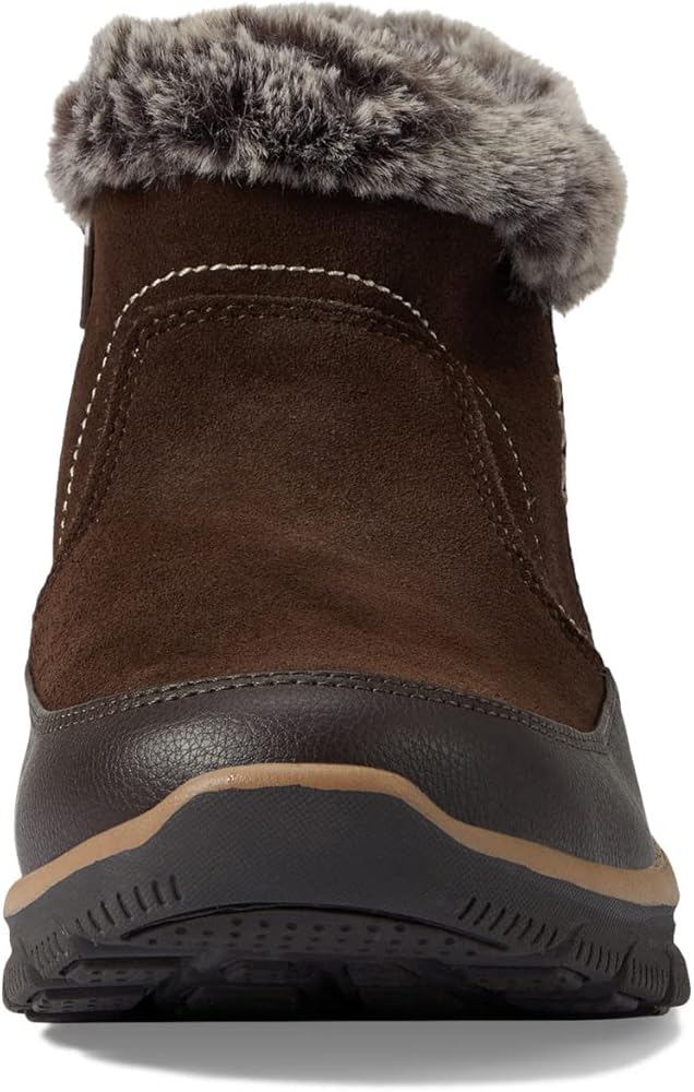 This hiker lace-up boot features a water-resistant treated leather upper with a sweater knit trim, cushioned Warm Tech Memory Foam insole and a slip-resistant outsole
