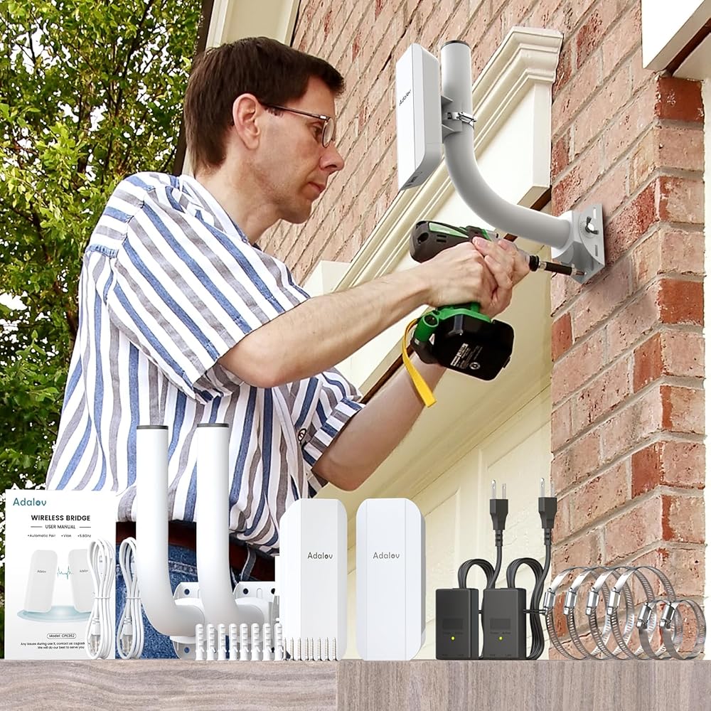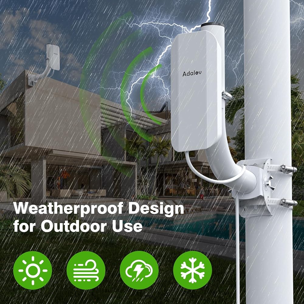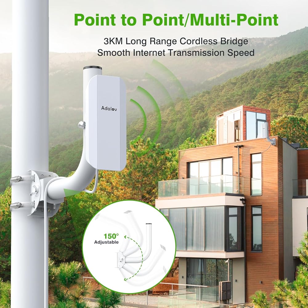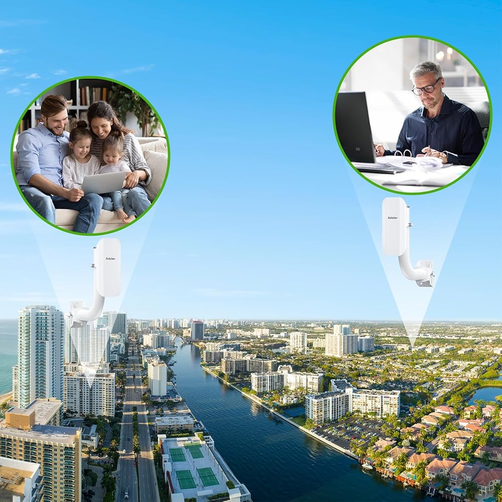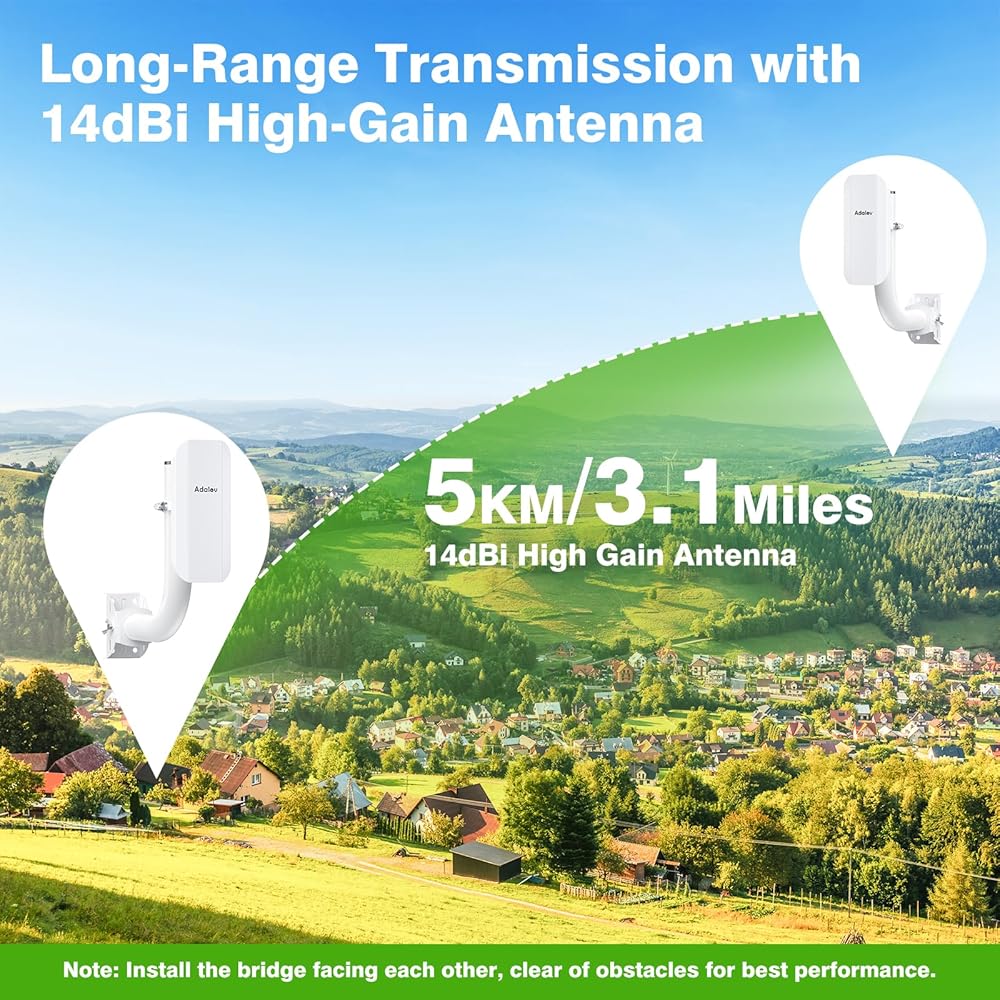 🪐【5KM Work Distance for Outdoor Usage】Long range Wireless bridges can work as far as up to 3.1 miles; 14 dBi directional antenna is perfect for PtMP or PtP interconnection over long distances.IP65 waterproof/dustproof designed for outdoor environments where it can withstand harsh weather conditions.It can easily extend the network range in your house to the garage shop, barn, or video surveillance systems through Wi-Fi bridge signal transmission.