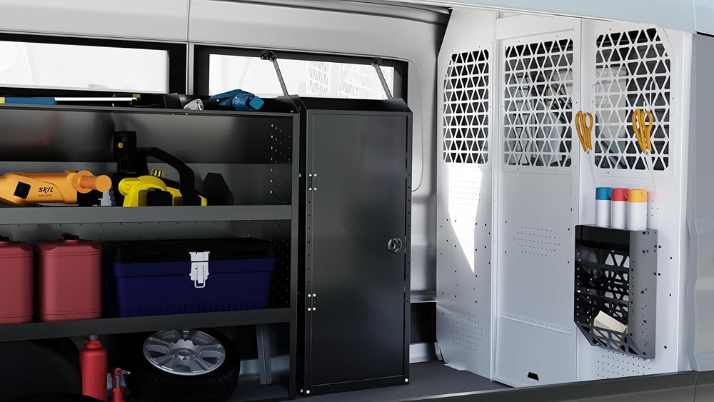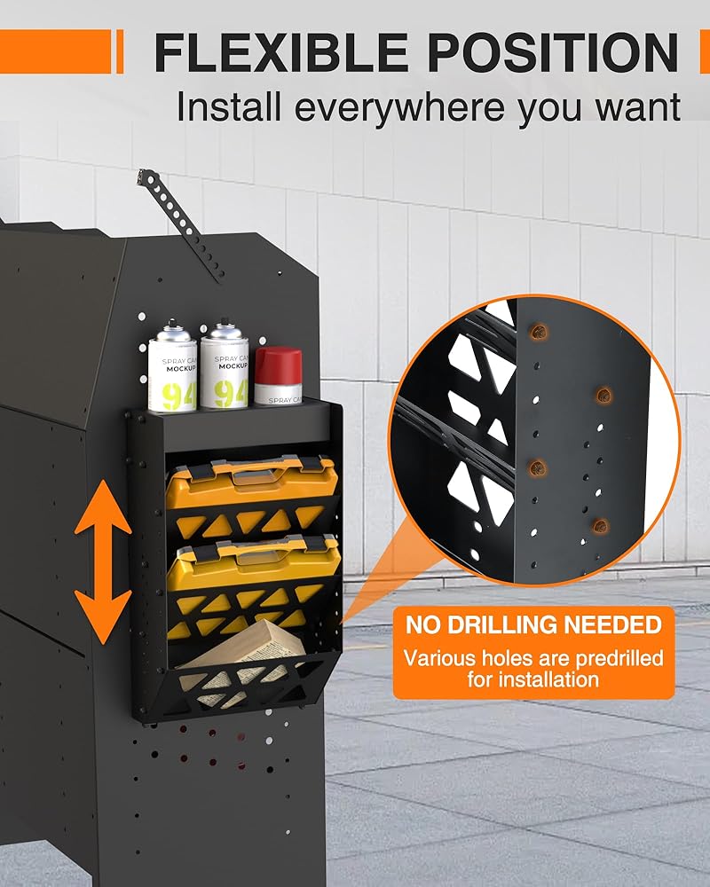 【Premium Material】Van shelving storage is constructed with heavy duty steel with black powdered coat finish, anti-rust and anti-corrosion, stable and reliable, have a good load-bearing capacity.