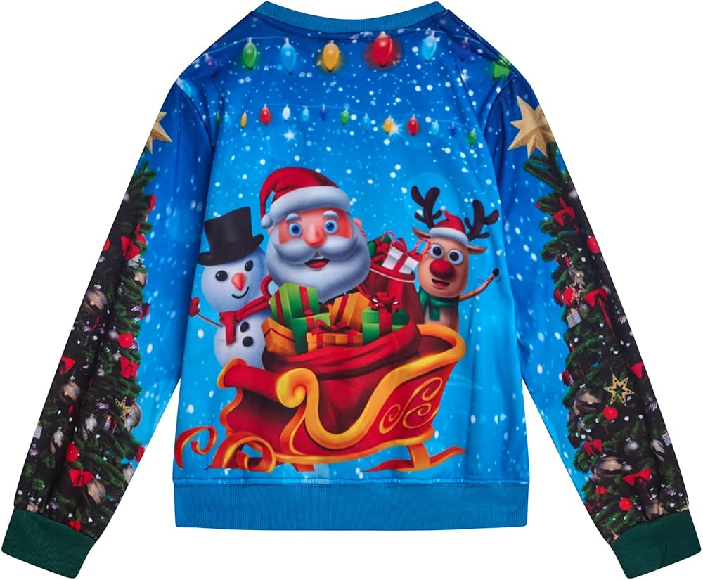 Get your boy ready to embrace the holiday season in style with the THREADCRAFT Boys' Ugly Christmas Sweater. Featuring an eye-catching and playful design with Santa, a festive elf, and a quirky llama, this sweater is perfect for adding a touch of humor and joy to all your Christmas festivities. Whether he's attending a school event, a family gathering, or just relaxing at home, this funny and festive Christmas sweater will make sure he stands out and becomes the center of holiday cheer. Designed specifically for boys, this sweater not only looks great but feels even better. Made from premium materials, it offers superior comfort and warmth throughout the chilly winter months. Whether he's bundling up for a day of outdoor fun or staying cozy indoors during a festive movie marathon, your son will appreciate the soft and snug feel of this boys' fashion sweatshirt. The breathable fabric allows for easy movement, ensuring that your boy stays comfortable no matter how active he is during the holiday season. This boys sweatshirt is the ideal choice for all your Christmas celebrations. From family dinners to Christmas morning gift exchanges, this graphic sweater delivers the perfect mix of style and festivity. Its fun design brings a unique twist to traditional holiday apparel, making it an instant favorite in your boy's wardrobe. Pair it easily with jeans or pajamas for a complete look that's both stylish and comfy, keeping your son ready for whatever holiday fun comes his way. Durability is key when it comes to holiday sweaters, and the THREADCRAFT Boys' Ugly Christmas Sweater delivers. Made from strong, long-lasting fabric, this sweater is built to withstand the excitement of the holiday season, year after year. It's also incredibly easy to care for—just toss it in the washing machine after a fun day of festivities, and it'll be ready to wear again in no time.