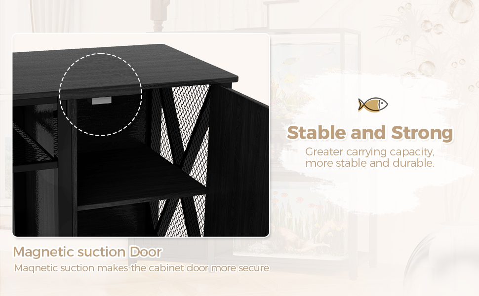 【Winning in Detail】 The mesh design on the sides of the storage cabinet is conducive to air circulation, and the fish tank table's adjustable legs can adapt to uneven surfaces to ensure stability