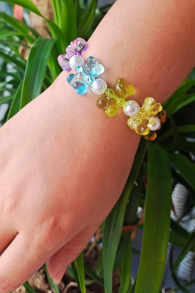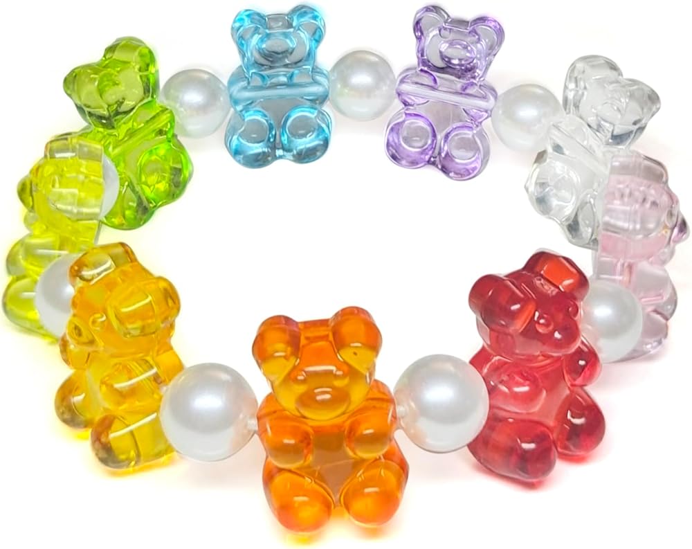 Colorful Bear Candy: Boasting an array of delightful hues from clear crystal to pink, orange, yellow, green,red, Purple and blue, each bead is meticulously chosen to create a rainbow of happiness on your.