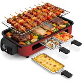【NON-STICK COATING GRILL PLATE】The grill plate is coated with a non-stick coating, which prevents food from sticking and makes cleaning easier. The raised ripples on the grill plate effectively block excess fat, making the barbecue healthier and more delicious. Additionally, there are 3 mini raclette pans included, specially designed for melting cheese. The grilling can be done simultaneously on the non-stick grill plate, saving time and ensuring delicious results