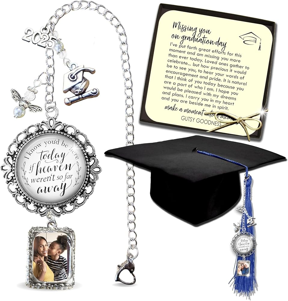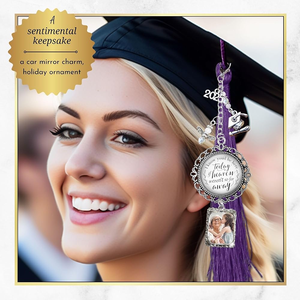 Graduation Cap Tassel Memorial Photo Charm Personalize I Know You'd Be Here Heaven Graduate Pendant & Silver Picture Frame 2026 Handmade Womens Mens Unisex Customize