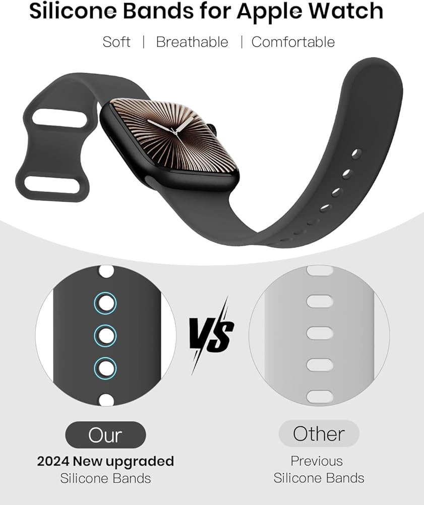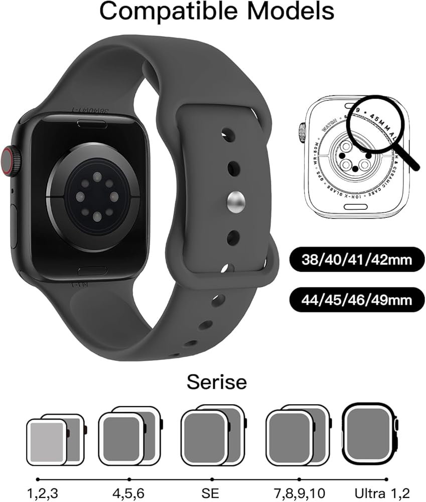 [Patent Pending] Compatible Models: HEARTBOOM premium silicone sport bands are designed for iWatch all versions. Suitable for Apple Watch Series 3/2/1 (38mm), Series 4/5/6/SE/SE 2 (40mm), Series 7/8/9 (41mm), Series 10 (42mm). Pls check the model on the back of your watch to select the correct size