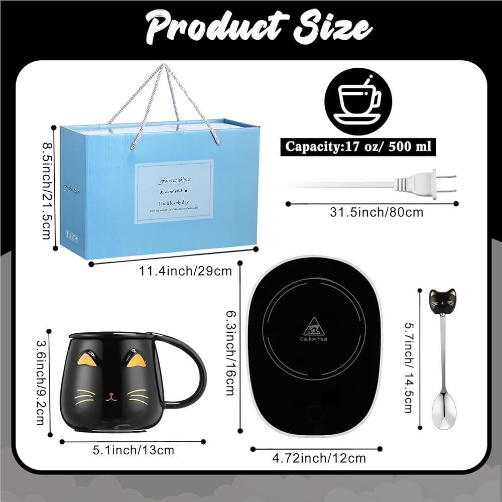 • Nice Gift for Cat Lovers: this electric coffee mug heater makes an excellent gift for cat enthusiasts! It's ideal for various occasions, including Christmas, New Year, Valentine's Day, and birthdays; Whether you're looking to surprise your mom, girlfriend, family members, or colleagues, this charming gift is sure to bring a smile to their faces and warmth to their drinks