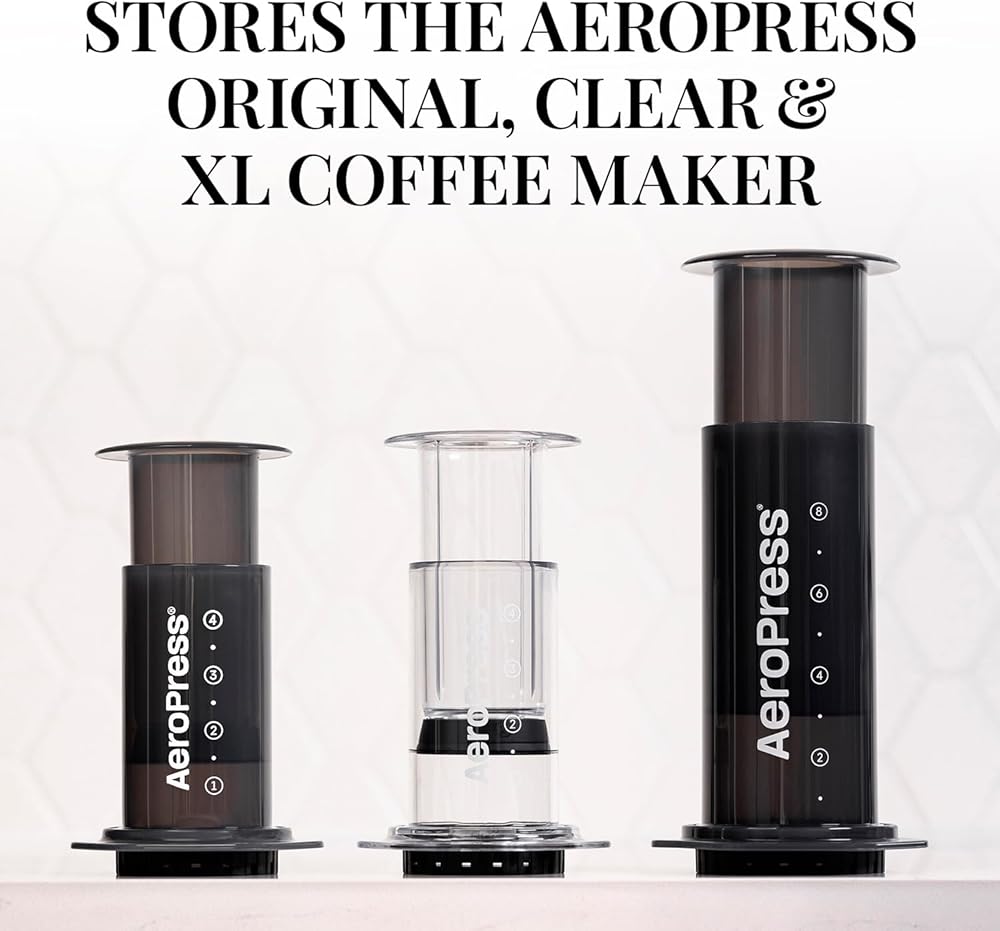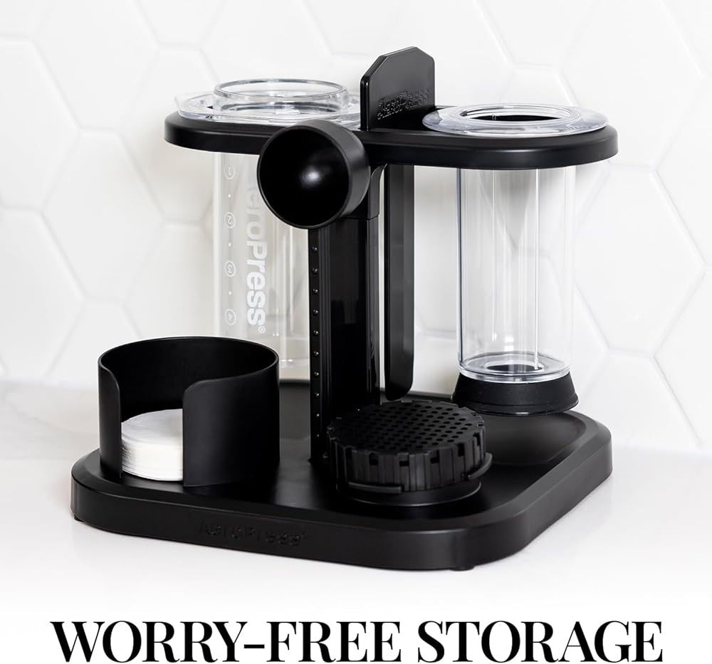 ASSEMBLES IN LESS THAN 60 SECONDS – Quickly go from unboxing to having your AeroPress system set up and neatly organized.Four rubber feet keep the AeroPress Organizer Stand in place for slip-free storage.
