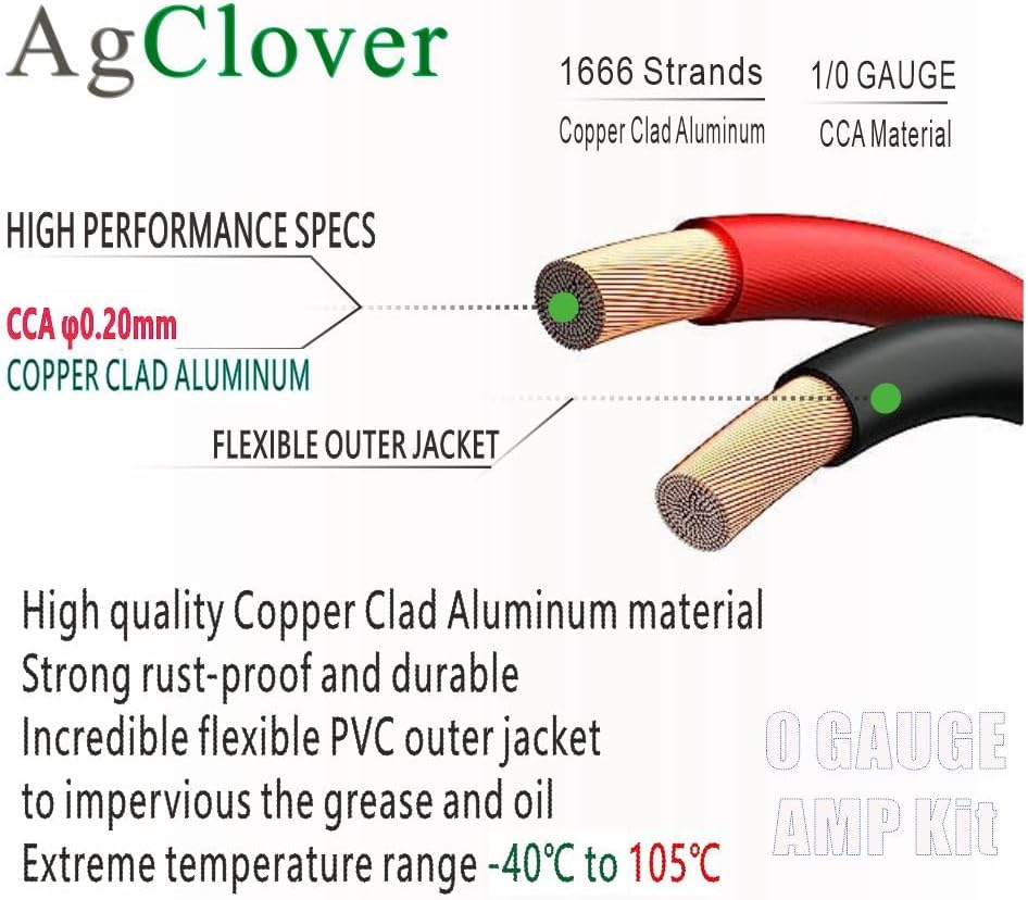 1/0 Gauge Amplifier Wiring Kit, Power Handling Complete Amplifier Wire Kit for High-Performance Car Audio Maximum Sound Quality and Power Efficiency to Your Radio, Subwoofers and Speakers