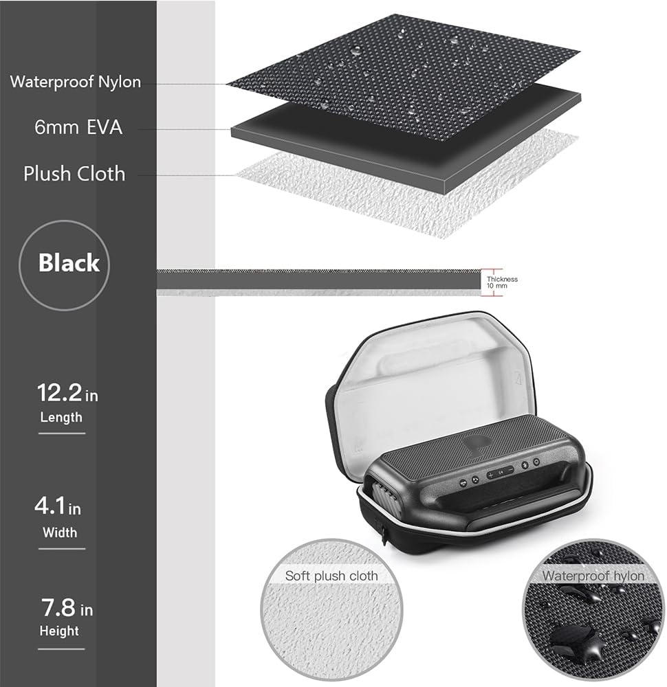【Superior Raw Material】Filled thicken foam around the whole case to protect Speaker from bumps and shock. The fabric is made of Water-resistant eva, which has good dustproof and waterproof splash effects.(Note: do not put the whole case into the water!)
