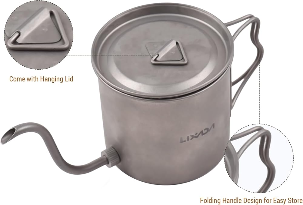 Features: Gooseneck spout provides accurate and slow waterflow for a perfect pour over coffee experience. Made with premium ti, this coffee kettle is durable for long-lasting use. The foldable handle makes it easy to use and store. With its exquisite design and modern style, this pour over coffee maker makes a perfect gift for any coffee lover. Small size, will not take up too much space on the workbench. Enjoy your coffee times. Specifications: Material: Ti Size: 8*8*8cm/ 3.1*3.1*3.1in Weight: 120g/ 4.2oz Package list: 1 * Pour Over Coffee Kettle 1 * Beer Cup