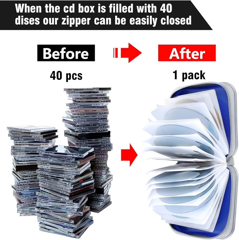 High Quality: To effectively protect CD and DVD discs, we tested PP films and non-woven fabrics of different thicknesses and chose the most suitable thickness to ensure long-term use without scratching the disc. The zipper is smooth and easy to use, it can be easily closed after 40 CDs are filled.