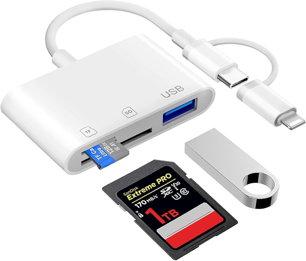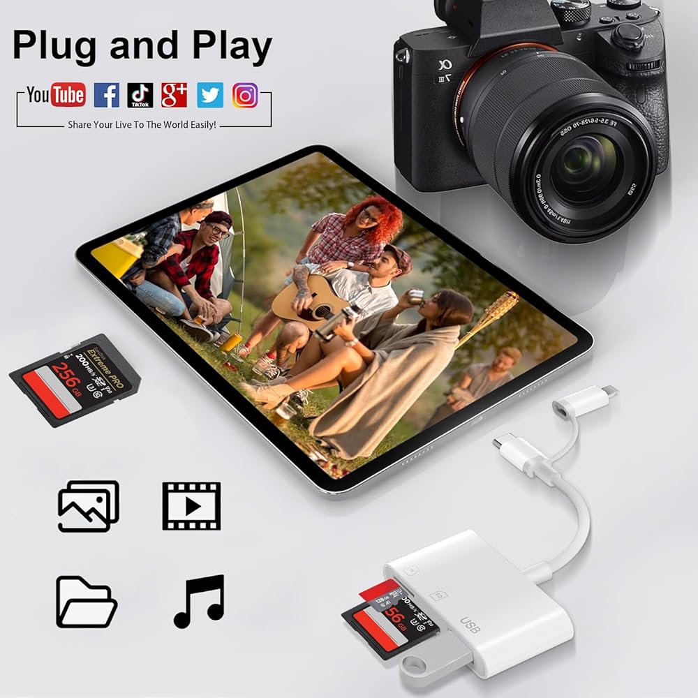 Capacity & Format: The digital camera adapter to iphone/phone support reading 1TB cards. Compatible with SD/SDHC/SDXC/MicroSD/MicroSDXC/MicroSDHC. Support FAT32 and exFAT formats, standard photo formats (JPEG & RAW), SD/HD video formats (H.264 and MPEG-4)