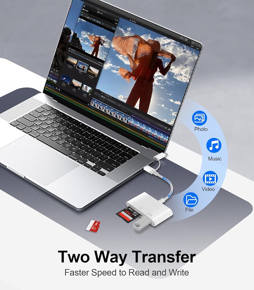 Bidirectional Transfer: The 5 in 1 Micro SD/SD Card Adapter supports two-way to stable transfer files/photos/music/video, from SD card to phone/pad or form phone/pad to memory cards. (The SD card adapter for iphone supports iOS 13 and later)
