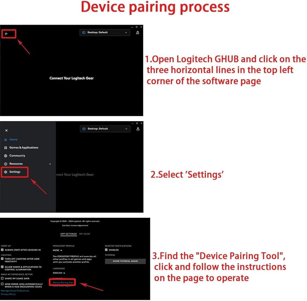 Receiver Pairing Method:1.Download G HUB software. 2.Insert the mouse receiver. 3. View the third pairing demonstration image or scan the video tutorial QR code inside the product packaging to complete the next steps.