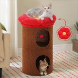 Extra Fun to Play: The flower cat condo includes a hanging ball that adds an element of playfulness, keeping your cat entertained and engaged. This feature enhances the overall appeal of this cat cave. This compact cat bed makes it space-saving, and you can easily move&place it to the suitable position