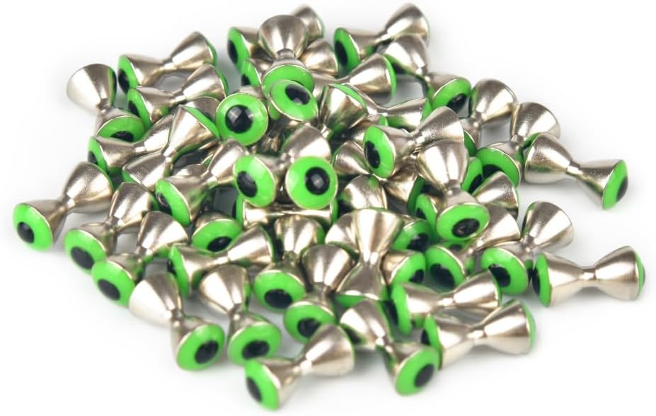 MUUNNN 60pcs Dumbbell Eyes Fly Tying, Fly Tying Eyes 3.2/4/5mm Realistic Brass Fly Tying Barbell Eyes Assortment Green/Red/Yellow