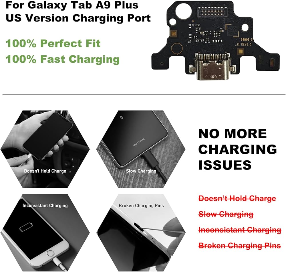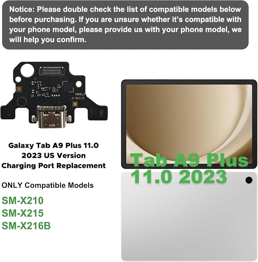 Compatibility Check: This charging port replacement is only compatible with Tab A9+ 11.0 2023 SM-X210. Please confirm your phone model before purchasing to ensure a proper fit.